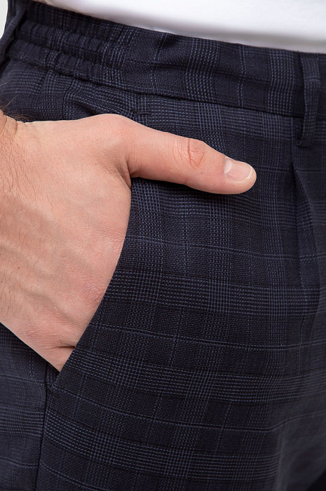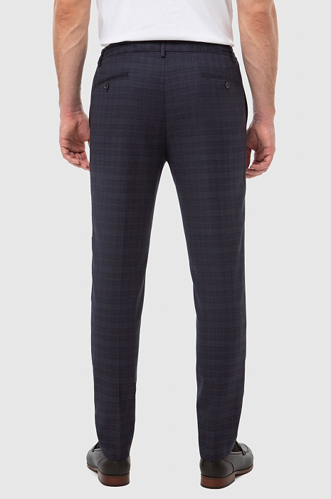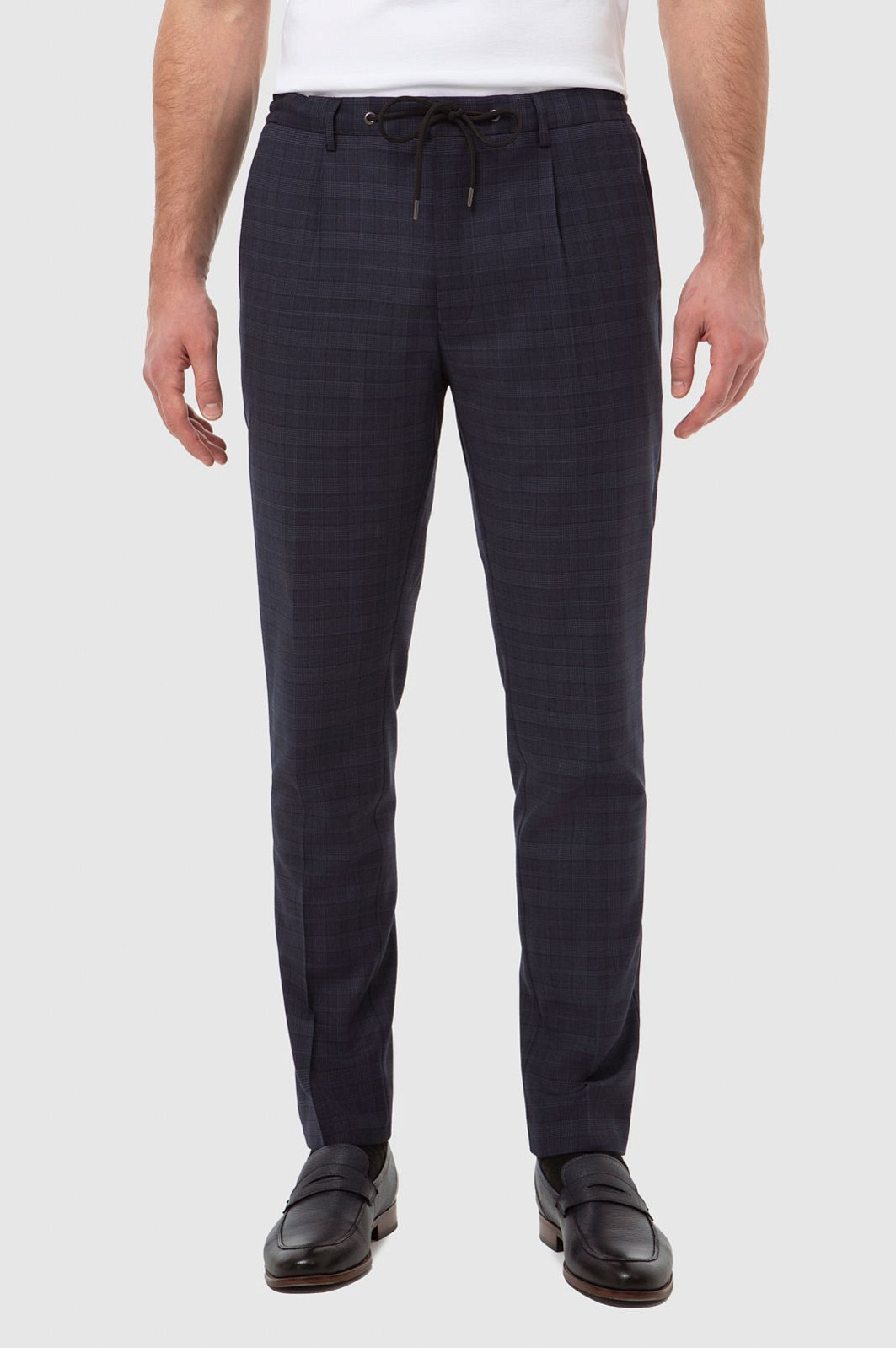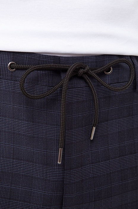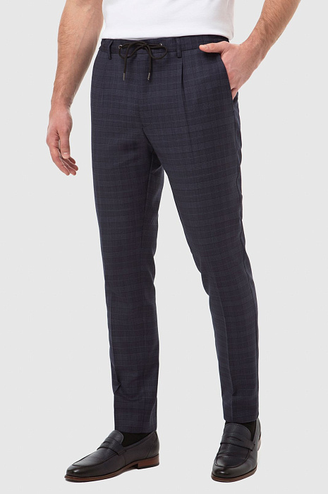 Брюки из шерсти в клетку на кулиске с водоотталкивающей обработкой, устойчивые к загрязнениям, цвет синий, цена 7 990 руб., код 267078 - купить в Тюмени в интернет-магазине KANZLER