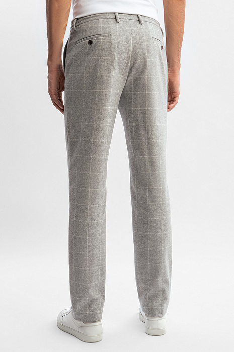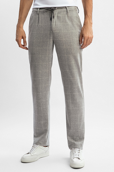 Брюки KANZLER из лимитированной коллекции в благородном сером оттенке в крупную белую клетку — микс классических форм и трендов сезона. Выполненные из премиальной мягкой шерсти, они обеспечивают тепло и комфорт, оставаясь элегантными в любой ситуации. Трендовый принт добавляет образу изысканности. Модель комфортного кроя с посадкой на кулиске позволяет регулировать плотность прилегания. Наши стилисты советуют дополнить образ кардиганом на молнии, выполненном в том же стиле - получится завершенный образ для деловых встреч или повседневных выходов. Параметры модели: рост 192, 101-76-97 Размер на модели: 50