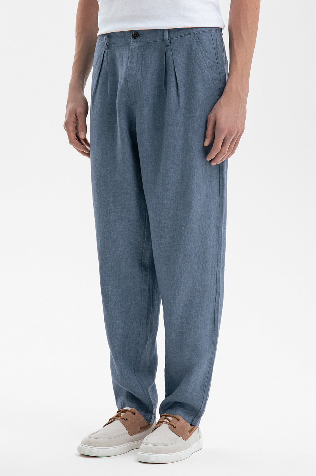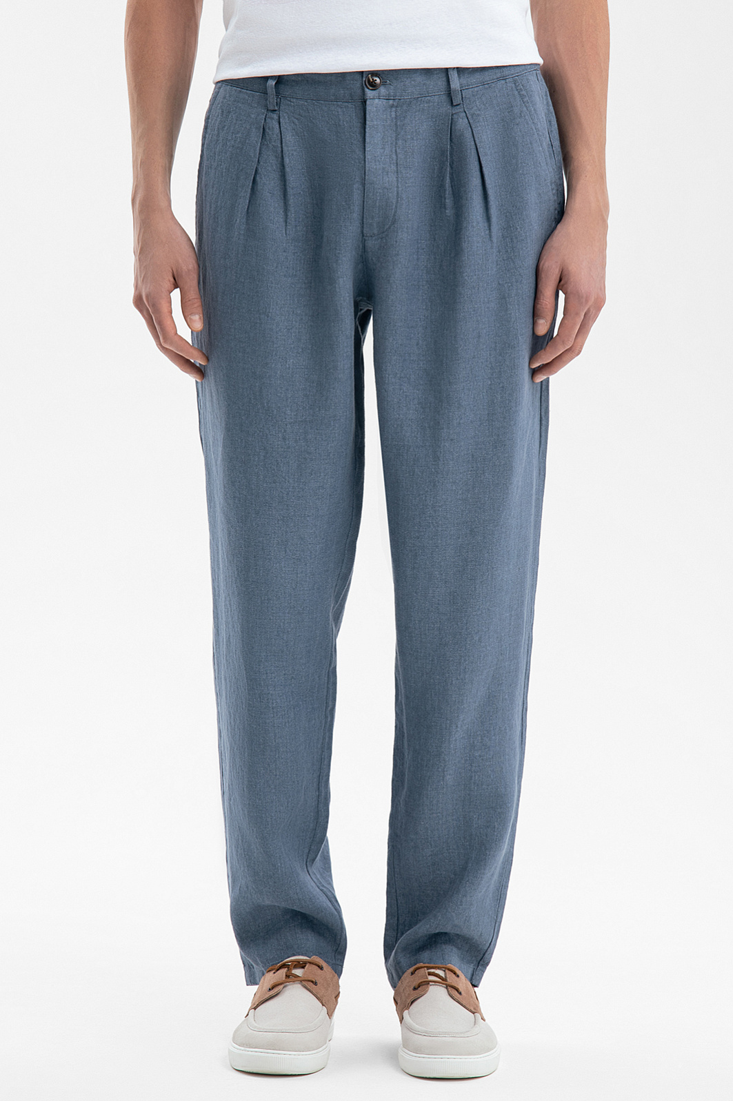 Серо-голубые брюки KANZLER привнесут в образ ощущение легкости и свободы. Материал – 100-процентный лен с благородной фактурой – обеспечивает идеальный микроклимат и дарит ощущение прохлады в жаркий день. Гигроскопичная ткань быстро впитывает влагу, оставляя кожу сухой. Серо-голубой оттенок сочетается как с пастельными, природными оттенками, так и с глубокими контрастными цветами. Дух свободы читается во всем – в крое, не стесняющем движений, в защипах, привносящих нотку расслабленности и обеспечивающих идеальную посадку, и в свежем оттенке, напоминающем утренний туман. Сочетайте их с белой льняной рубашкой и эспадрильями или дополните тонким джемпером и лоферами для более формального образа. Параметры модели: рост 189, 91-78-95 Размер на модели: 50