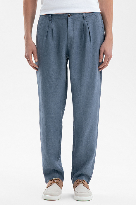 Брюки изо льна, цвет голубой, цена 8 990 руб., код 269096 - купить в Тюмени в интернет-магазине KANZLER