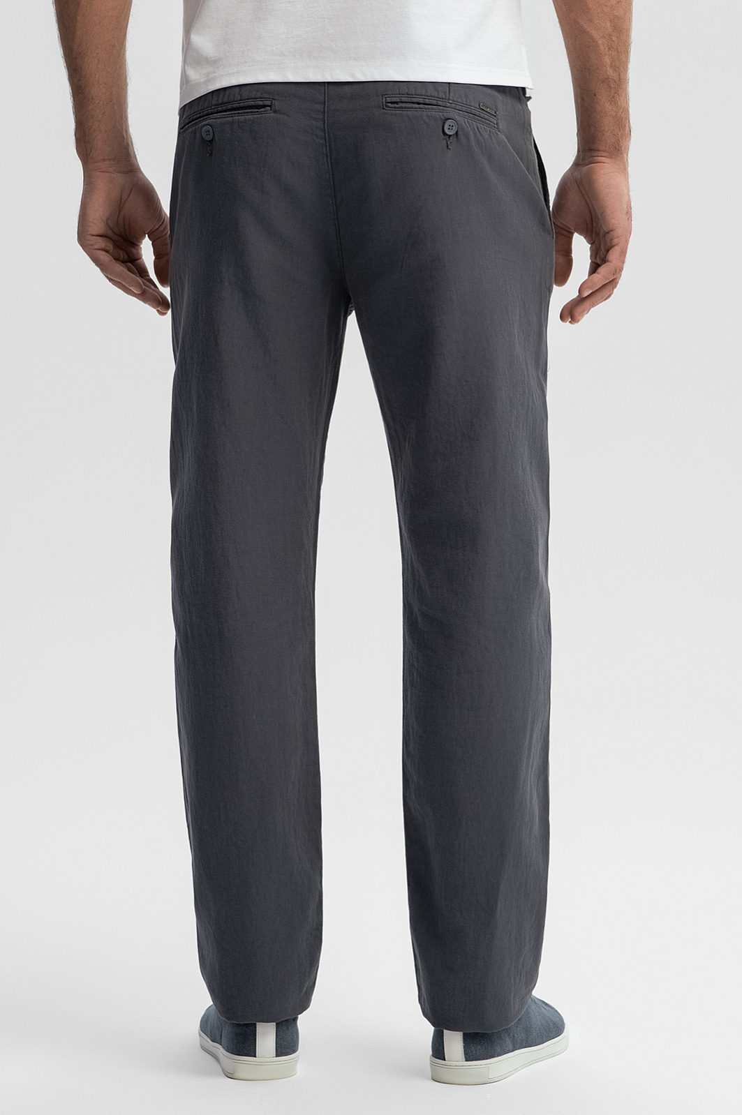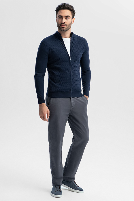 Темно-серые брюки KANZLER из хлопка и льна – сочетание натуральности, легкости и практичности. Состав материала (76% хлопок и 24% лен) обеспечивает воздухопроницаемость, прочность и оригинальную фактуру. Подкладка карманов выполнена из 100% хлопка. Классический крой создает идеальную посадку для любого типа фигуры, сохраняя свободу движений. Универсальная модель в стиле кежуал легко адаптируется под любую обстановку — от прогулок до более формальных встреч. Параметры модели: рост 192, 108-83-102 Размер на модели: 50