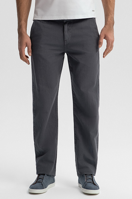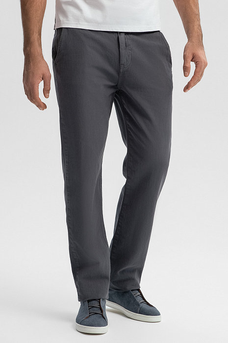 Брюки из хлопка и льна, цвет серый, цена 8 990 руб., код 269219 - купить в Тюмени в интернет-магазине KANZLER