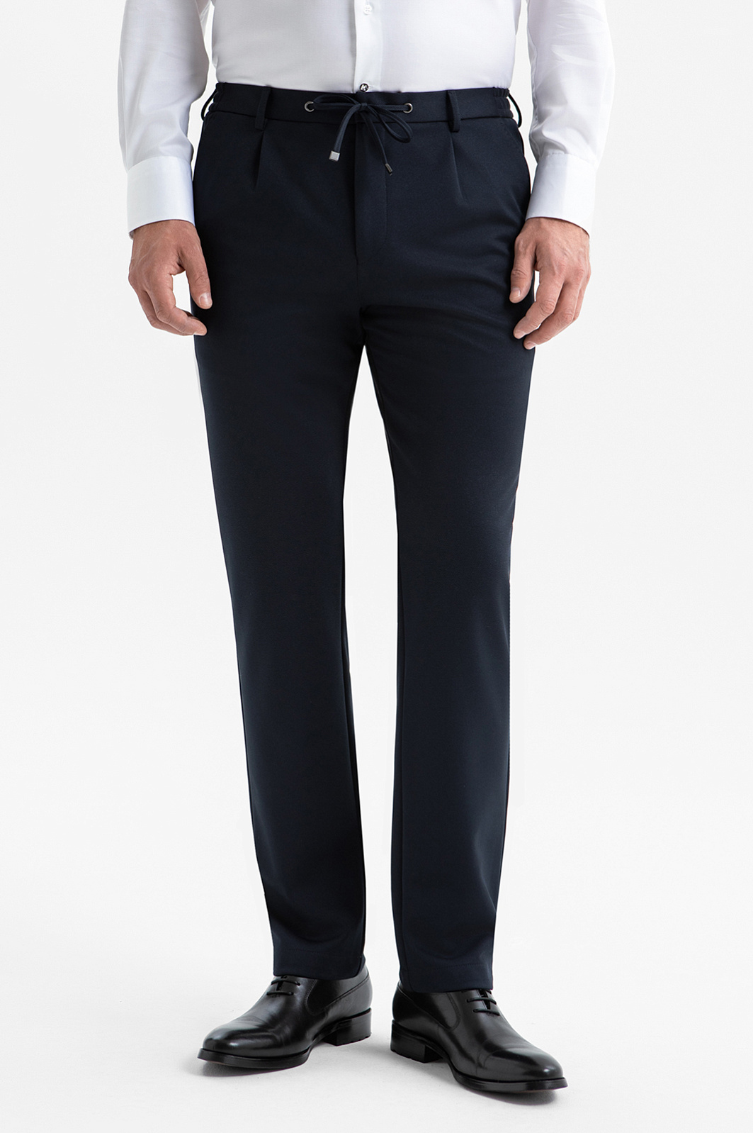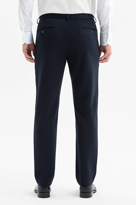 Брюки KANZLER на кулиске глубокого синего цвета — современная интерпретация классики, ориентированная на комфорт. Слегка зауженный крой придает образу элегантность. Удобная кулиска на поясе обеспечивает идеальную посадку и добавляет лёгкую непринуждённость, сохраняя аккуратный силуэт. Универсальные брюки идеально подходят для динамичного ритма работы. Современная ткань из полиэстера с добавлением спандекса отличается прочностью, устойчивостью к сминанию и способностью адаптироваться под индивидуальные особенности фигуры. Параметры модели: рост 189, 102-80-99 Размер на модели: 50