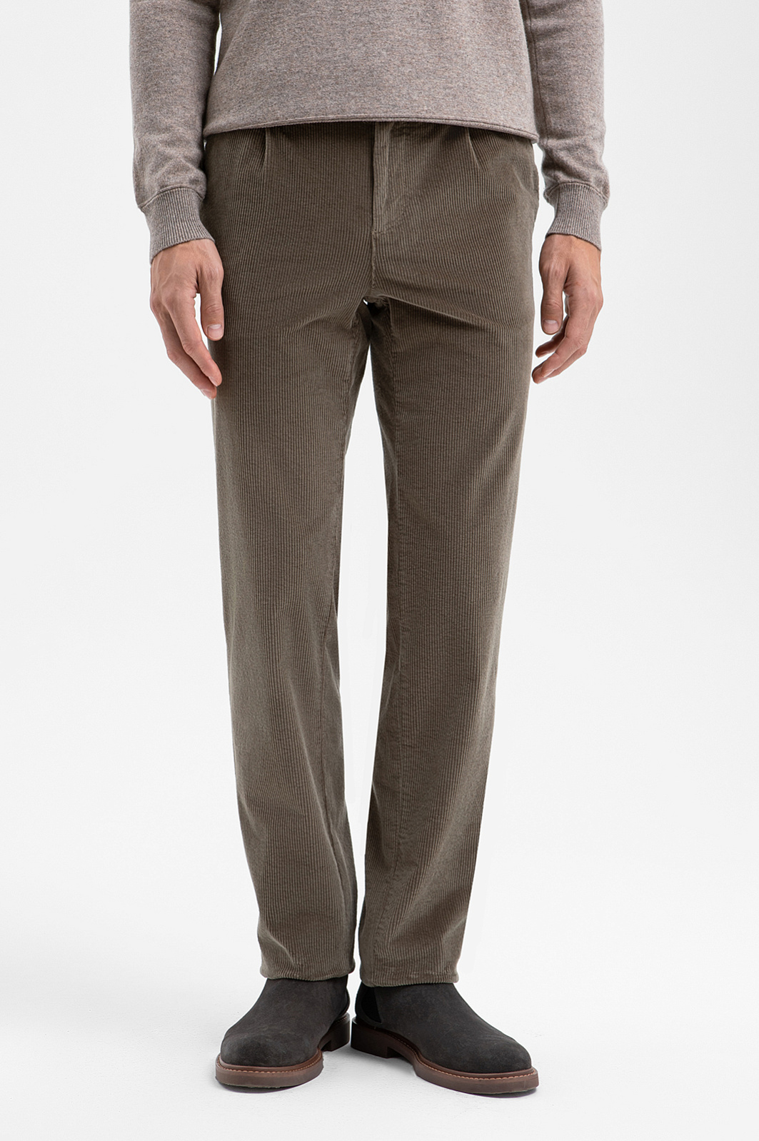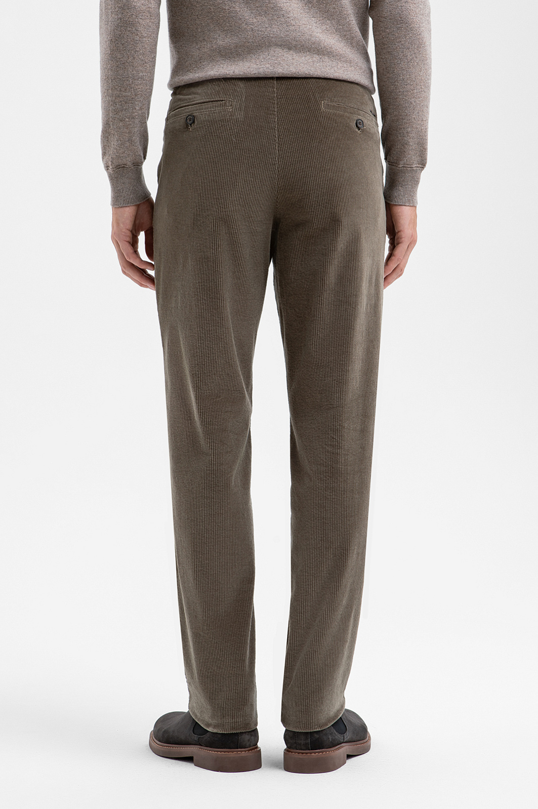 Вельветовые брюки KANZLER воплощают спокойствие, умиротворение и уют. Их глубокий оливковый оттенок придаёт образу благородную сдержанность и утончённую элегантность. Силуэт универсален: брюки подходят для любого типа фигуры и обеспечивают свободу движений при ходьбе. Характерный рубчатый рисунок мягко переливается на свету, придавая ткани особую глубину и живую фактуру. Состав из 98% хлопка с добавлением 2% спандекса обеспечивает воздухопроницаемость и лёгкую эластичность, позволяющую ткани сохранять форму и адаптироваться к индивидуальным особенностям фигуры. Прочная подкладка из хлопка и полиэстера облегчает надевание и делает ношение брюк более комфортным. Параметры модели: рост 188, 97-82-92 Размер на модели: 50