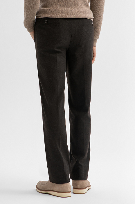 Брюки KANZLER — универсальная основа современного гардероба. Темно-серый оттенок делает модель максимально адаптивной: днём брюки можно носить с рубашкой и строгими ботинками, вечером — с джемпером или пиджаком и лоферами. Базовая модель легко вписывается в любой образ, оставаясь актуальной вне времени и трендов. Прямой крой и стрелки комплементарно смотрятся на фигуре любого типа. За счёт легких защипов силуэт сохраняет строгость, но выглядит чуть менее формально. Современная смесовая ткань на основе полиэстера с вискозой и эластаном отличается прочностью, стойкостью к сминанию и необходимой эластичностью. Параметры модели: рост 188, 97-82-92 Размер на модели: 50