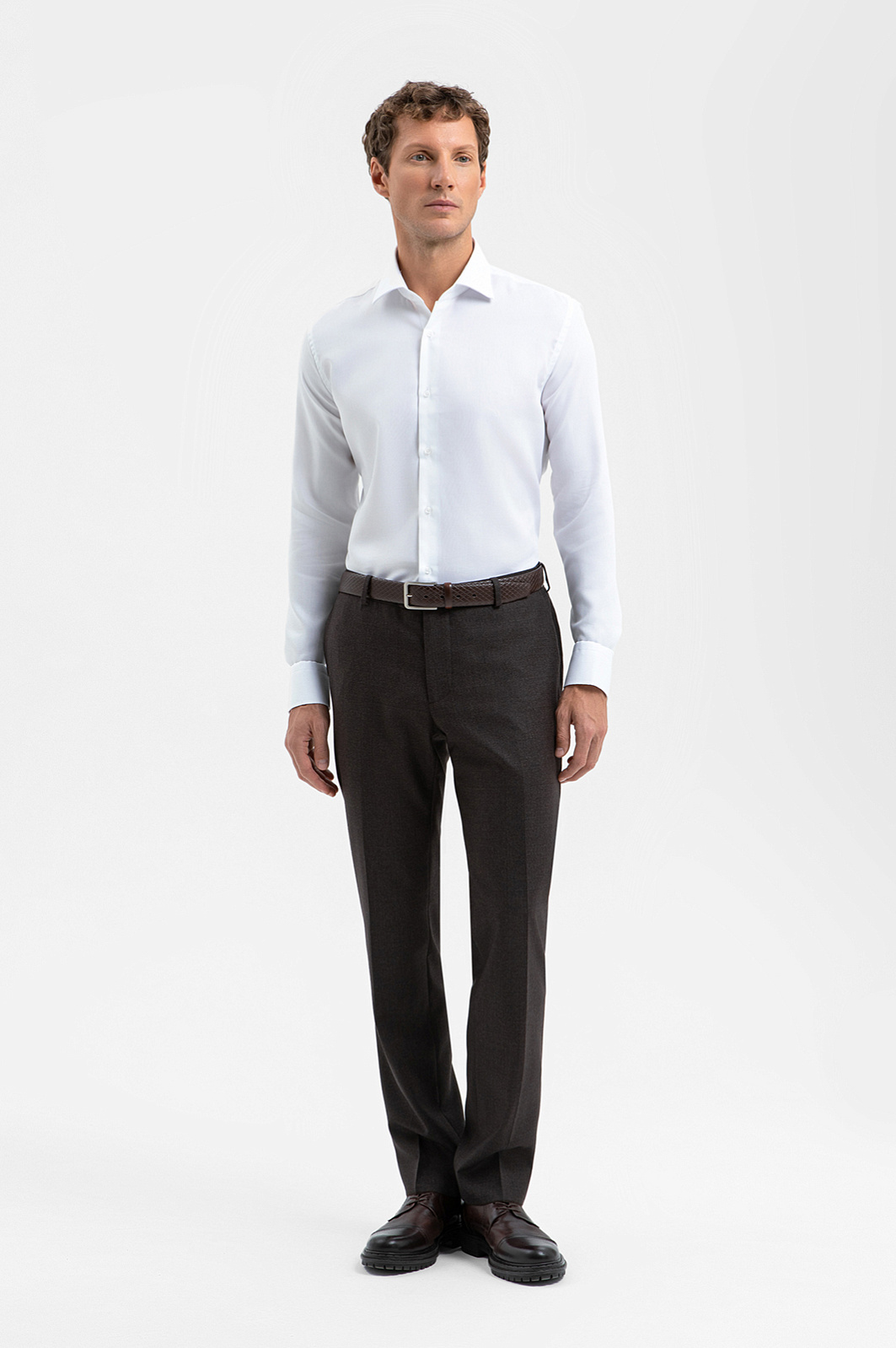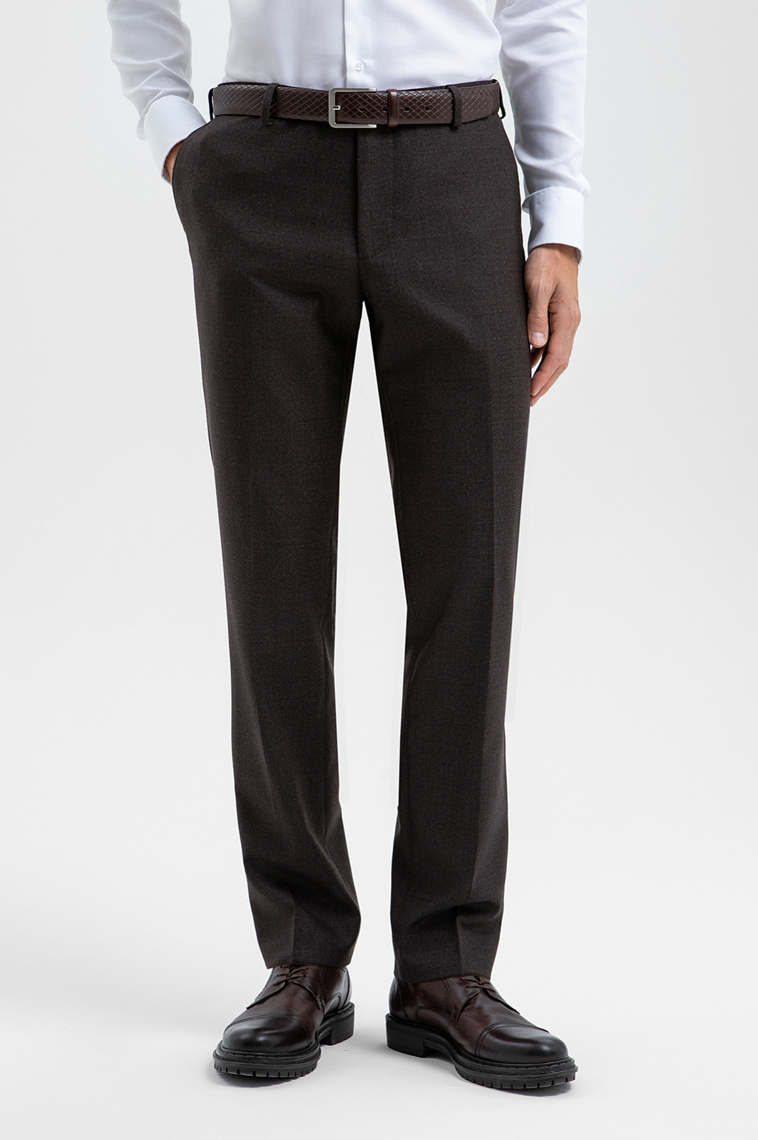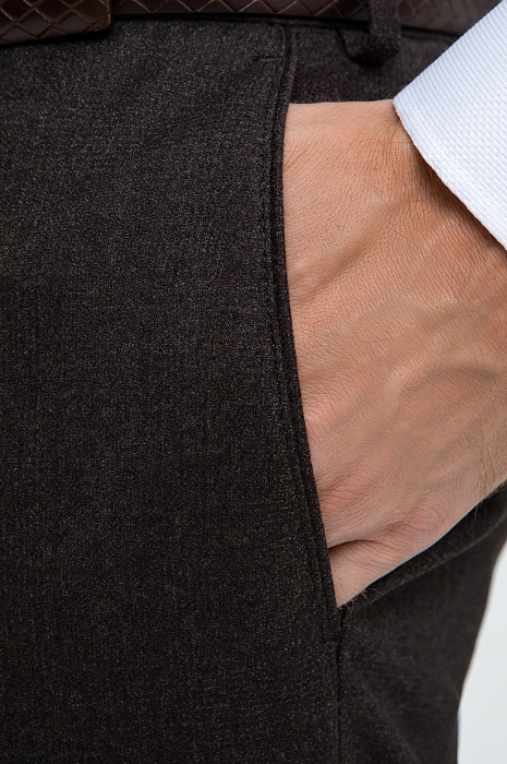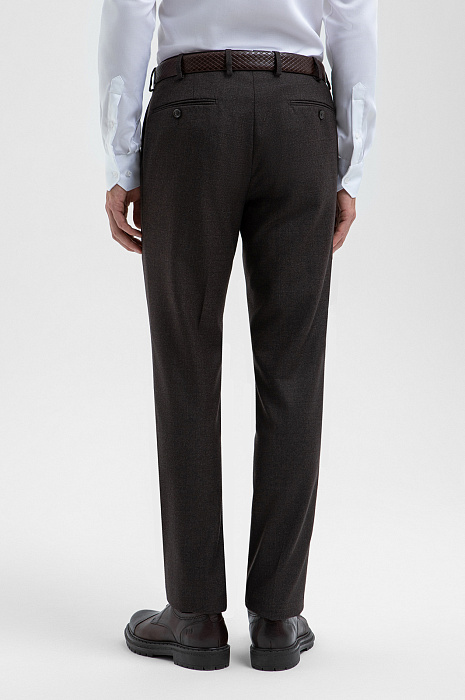 Брюки из шерсти, устойчивой к сминанию и загрязнениям, цвет коричневый, цена 14 990 руб., код 270358 - купить в Тюмени в интернет-магазине KANZLER