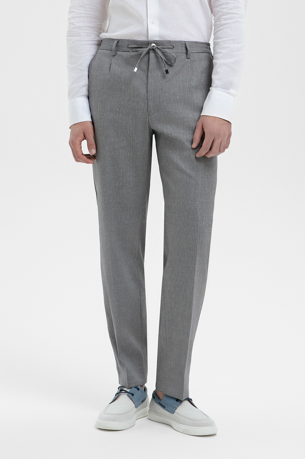 Брюки из шерсти, льна и шелка, цвет серый, цена 17 990 руб., код 271038 - купить в Тюмени в интернет-магазине KANZLER