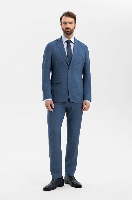 Голубые брюки KANZLER из инновационной ткани с лёгким меланжевым эффектом — универсальная модель для офиса, которую можно сочетать с пиджаком KANZLER из той же ткани и с более расслабленными вещами — джемпером и сорочкой. Современный слегка зауженный силуэт подчёркивает линию ног. Небольшие защипы спереди делают посадку удобной для любого типа фигуры. Практичная смесовая ткань на основе прочного полиэстера с добавлением дышащей вискозы и эластичного спандекса отличается устойчивостью к сминанию, воздухопроницаемостью и пластичностью.