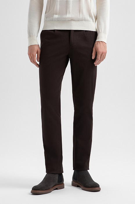Брюки из хлопка, цвет коричневый, цена 12 990 руб., код 271306 - купить в Тюмени в интернет-магазине KANZLER