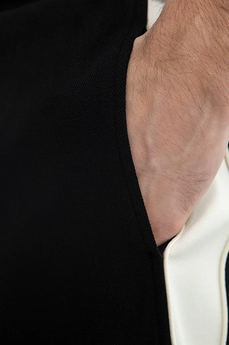 Спортивные брюки KANZLER из хлопка отличаются современным дизайном, заданным лаконичным кроем и контрастным сочетанием чёрного фона и белых вставок. В них можно не только с достоинством принять курьера доставки, но и выйти в люди — на прогулку или пробежку. Умеренно свободный крой и эластичный пояс с кулиской обеспечивают комфорт и естественную посадку. Мягкий трикотаж не сковывает движений. Он создан из гиппоаллергенного хлопка с добавлением полиэстера и спандекса. Сочетание натуральных волокон и синтетических нитей делает ткань дышащей, приятной к телу, прочной и пластичной.