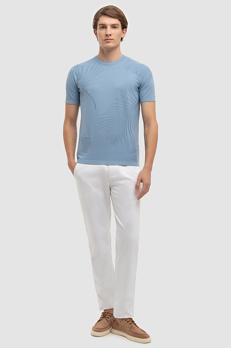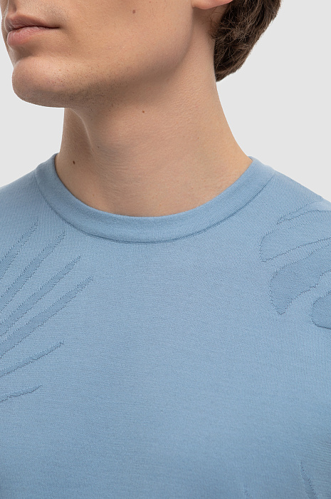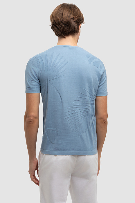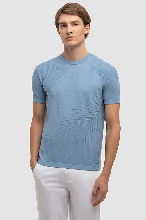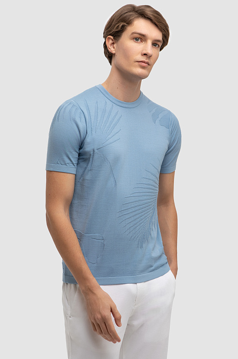 Джемпер с коротким рукавом из хлопка Пима, цвет голубой, цена 4 990 руб., код 267267 - купить в Тюмени в интернет-магазине KANZLER