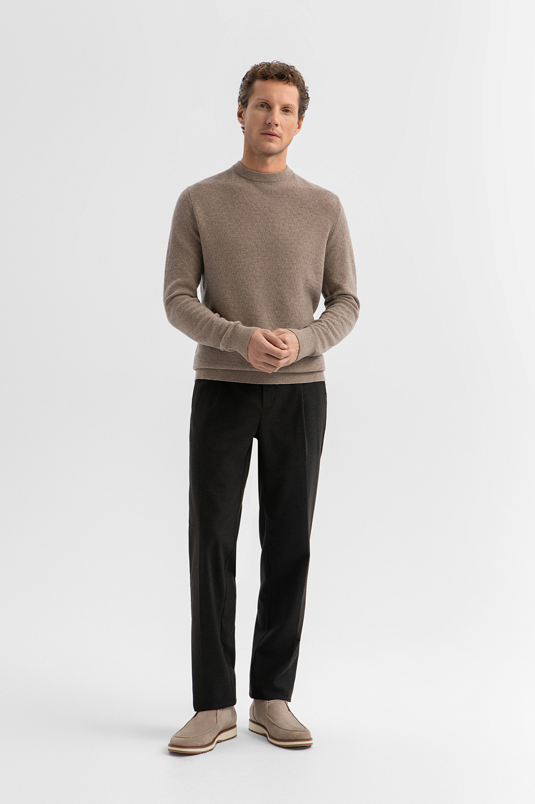 Фактурный бежевый свитер KANZLER из шерсти — вещь с настроением и характером. Мягкий, тёплый, с выразительной текстурой, он отсылает к эстетике героев черно-белых фильмов Микеланджело Антониони — глубоких, харизматичных и погружённых в себя. Идеален для тех, кто ценит вневременной стиль и выбирает одежду как способ выразить свой внутренний мир. Лаконичный силуэт подчёркивает естественность образа, а трикотажные резинки на манжетах и по нижнему краю обеспечивают комфортную посадку. Вязаный трикотаж сделан из чистой шерсти. Натуральные гипоаллергенные волокна согревают тело и обеспечивают циркуляцию воздуха. Параметры модели: рост 188, 97-82-92 Размер на модели: M