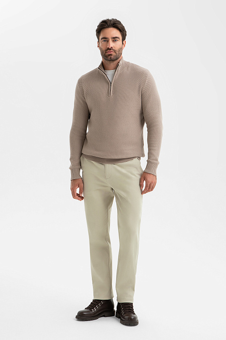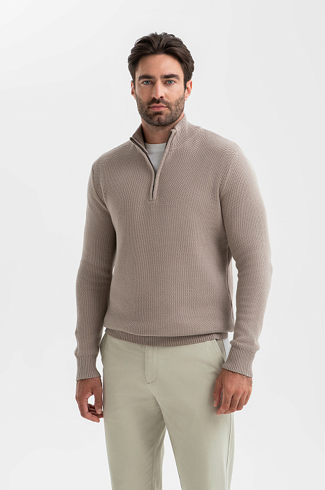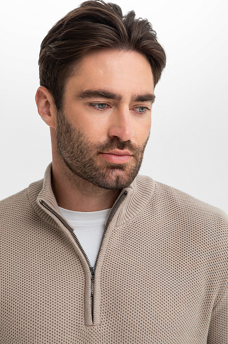 Светло-коричневый джемпер KANZLER – вечная классика в безупречном исполнении. Для его создания выбрали 100-процентный хлопок премиального качества, мягкий гипоаллергенный материал, который сохраняет форму и цвет после многократных стирок. Мягкий воротник-стойка на молнии – акцентная деталь, позволяющая трансформировать образ и регулировать комфортную температуру. Резинка на манжетах и вдоль низа обеспечивает идеальную посадку и сохраняет тепло. Параметры модели: рост 192, 108-83-102 Размер на модели: M