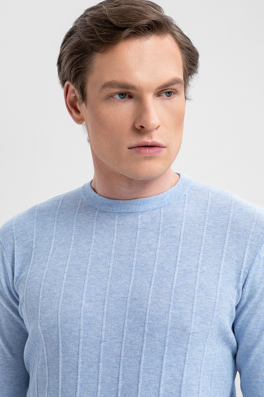 Джемпер KANZLER из 100% хлопка Пима — воплощение тихой роскоши, которая умеет привлекать и удерживать внимание без показной демонстративности. Вертикальные фактурные полоски придают джемперу архитектурную строгость и визуальную глубину, а светло-васильковый оттенок добавляет образу свежесть и лёгкость. Дорогой трикотаж создан из хлопка Пима — материала, который ценится за мягкость, шелковистую текстуру и долговечность. Его волокна значительно длиннее и тоньше, чем у обычного хлопка, благодаря чему ткань приобретает особую мягкость, исключительную прочность и способность сохранять безупречный внешний вид сезон за сезоном.