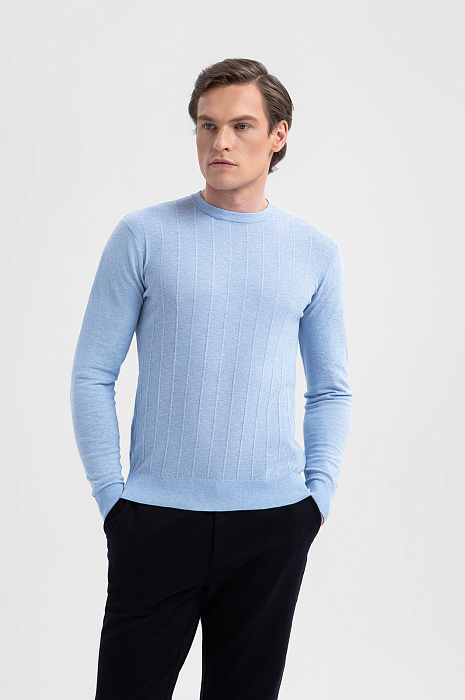Джемпер из хлопка Пима, цвет голубой, цена 6 990 руб., код 271122 - купить в Тюмени в интернет-магазине KANZLER