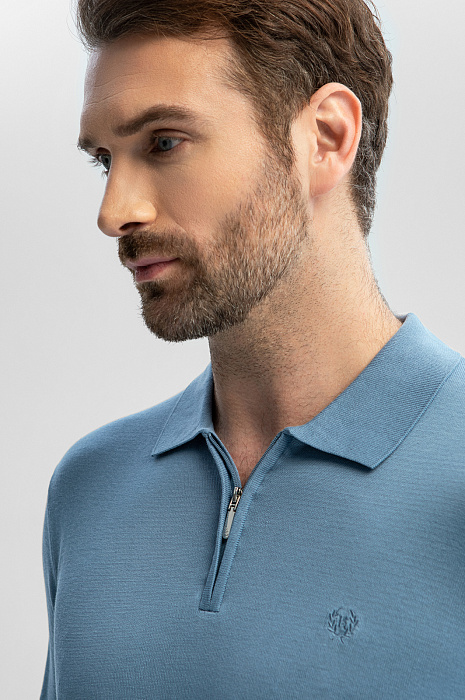 Голубое поло KANZLER с длинным рукавом — модель, в которой каждая деталь создана для вашего комфорта. Премиальный смесовый материал объединил лучшие качества трех видов натуральных волокон: мягкость и легкость хлопка, нежность шелка и прочность льна. Гладкая матовая фактура обеспечивает деликатное соприкосновение с кожей. Спокойный голубой оттенок освежает и становится акцентом образа. Воротник на молнии придает модели одновременно спортивный и утонченный вид. Для аккуратной посадки по фигуре предусмотрена мягкая эластичная резинка на манжетах и вдоль низа изделия. На груди — вышитый логотип бренда. Поло идеально подходит для прогулок в прохладные летние вечера, особенных мероприятий или деловых будней, гармонично сочетаясь как с повседневными джинсами, так и с элегантными брюками. Параметры модели: рост 189, 102-80-99 Размер на модели: M