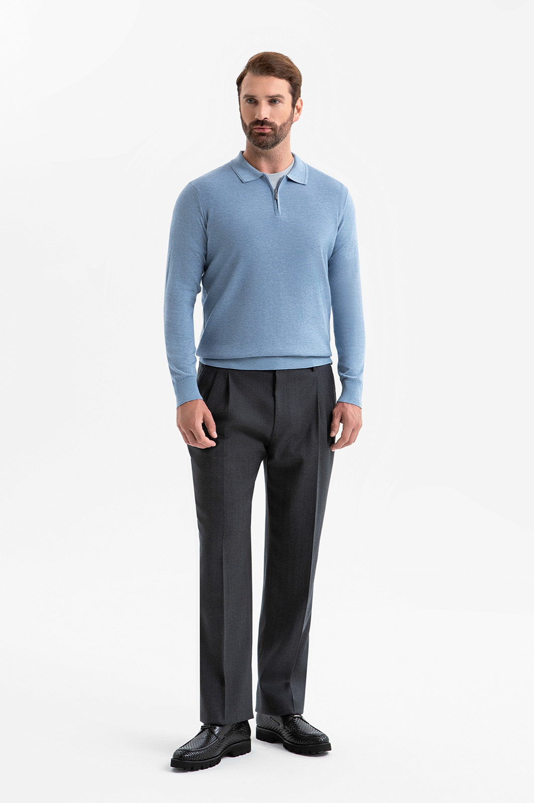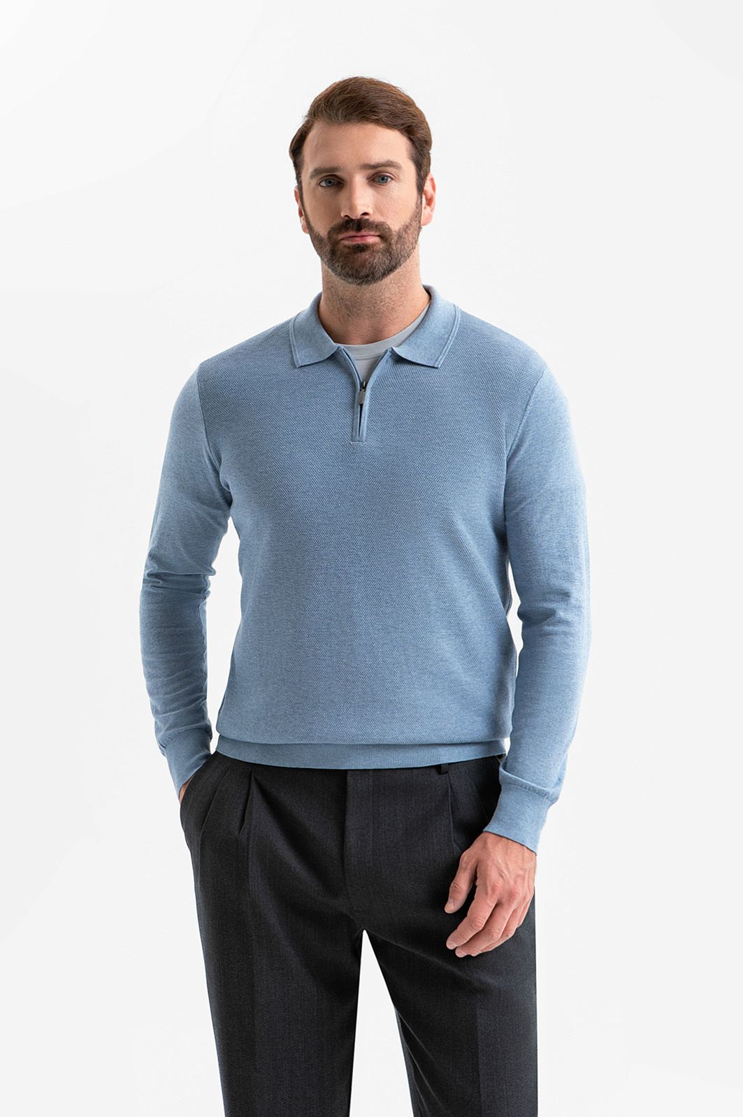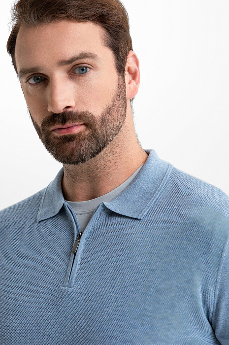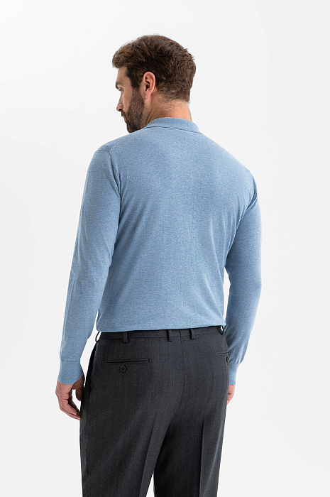 Джемпер поло из хлопка Пима, цвет голубой, цена 9 990 руб., код 270243 - купить в Тюмени в интернет-магазине KANZLER