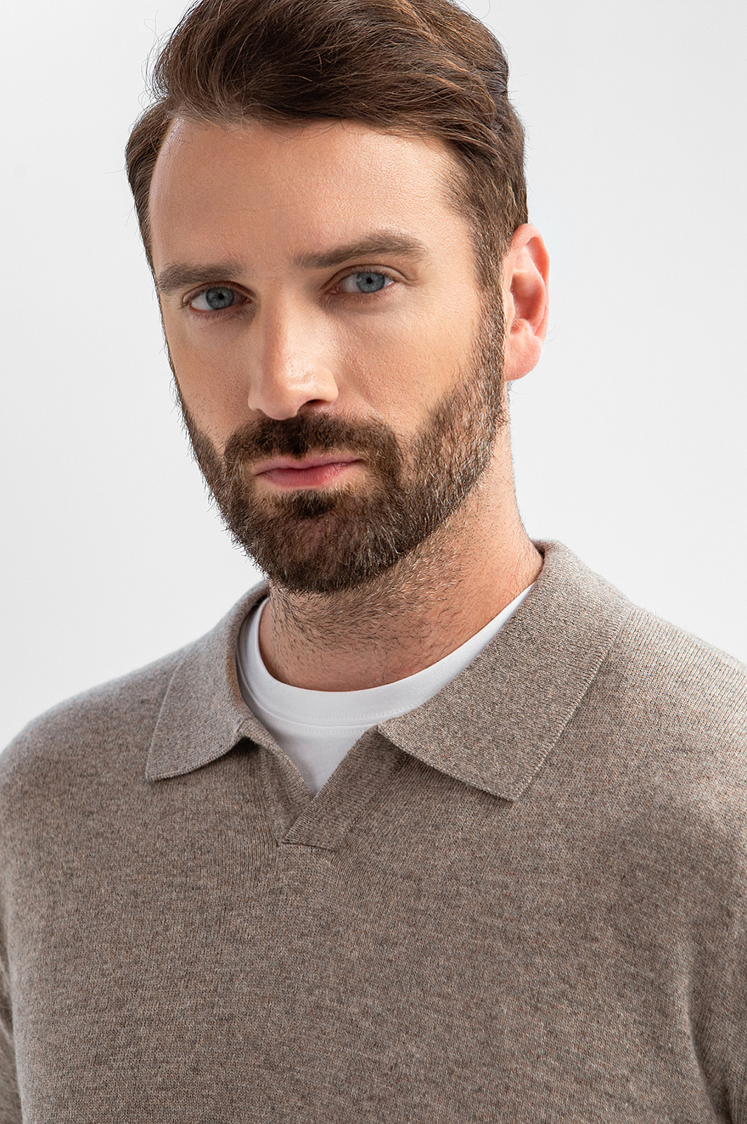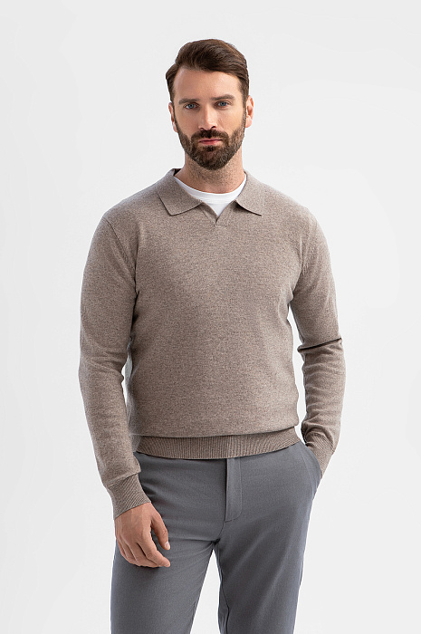 Джемпер поло из шерсти и кашемира, цвет бежевый, цена 7 990 руб., код 270262 - купить в Тюмени в интернет-магазине KANZLER