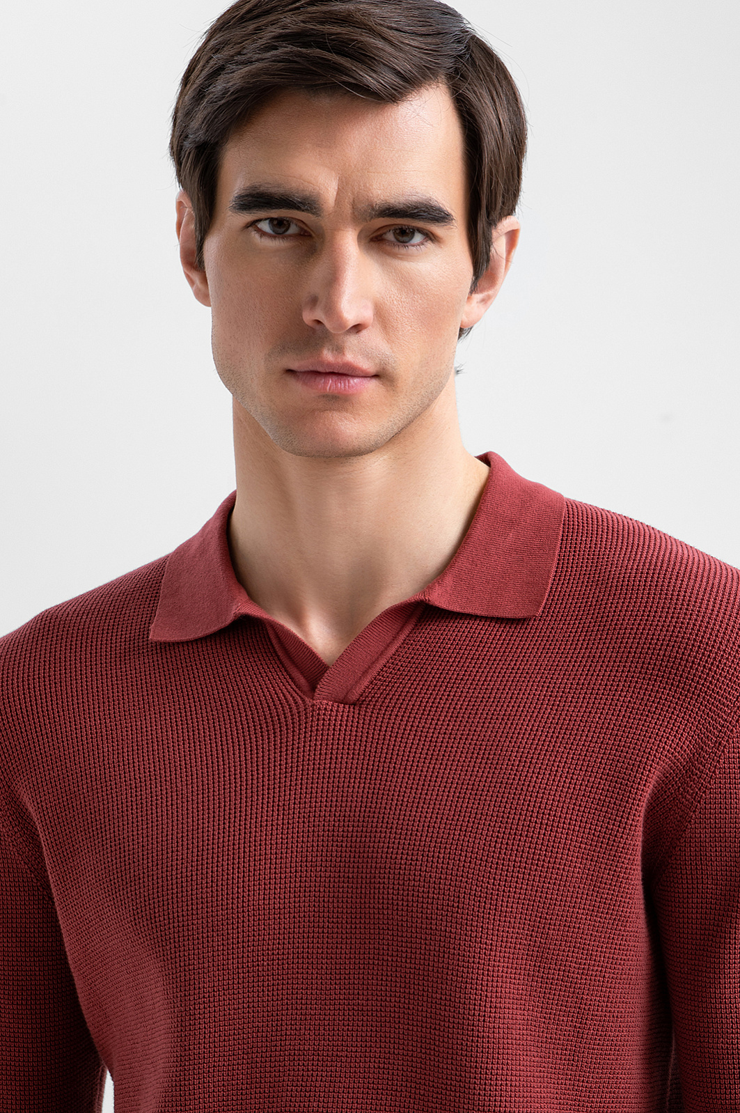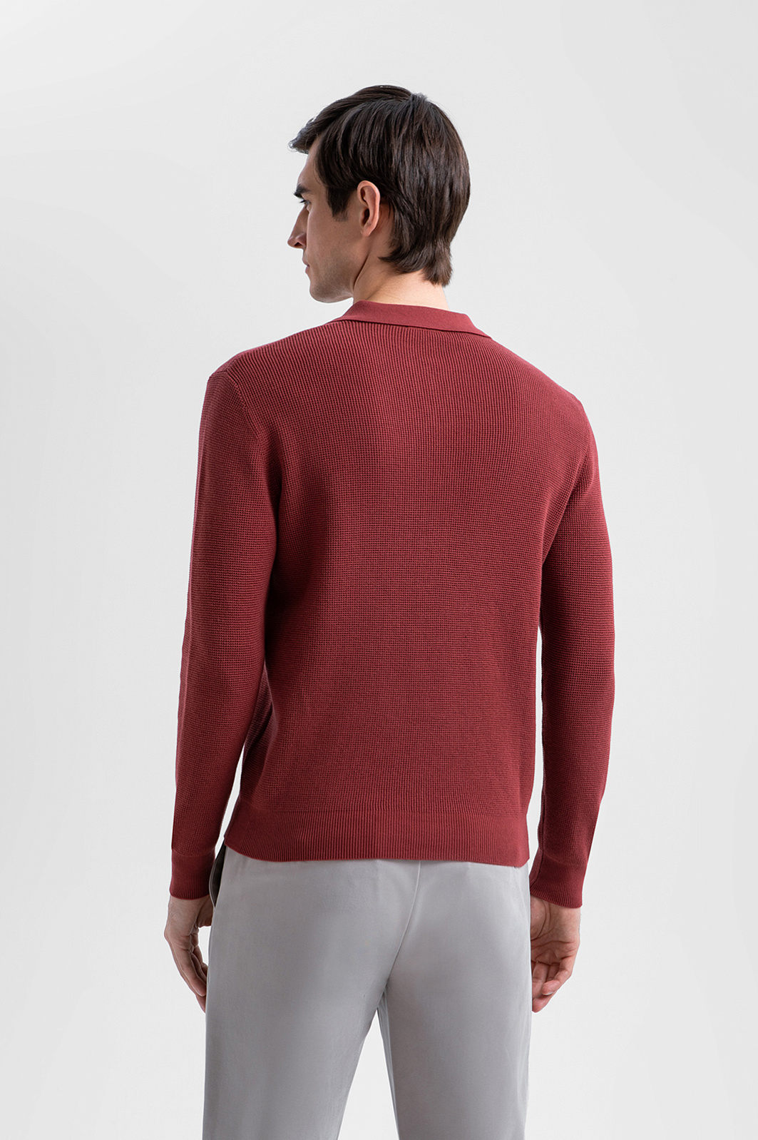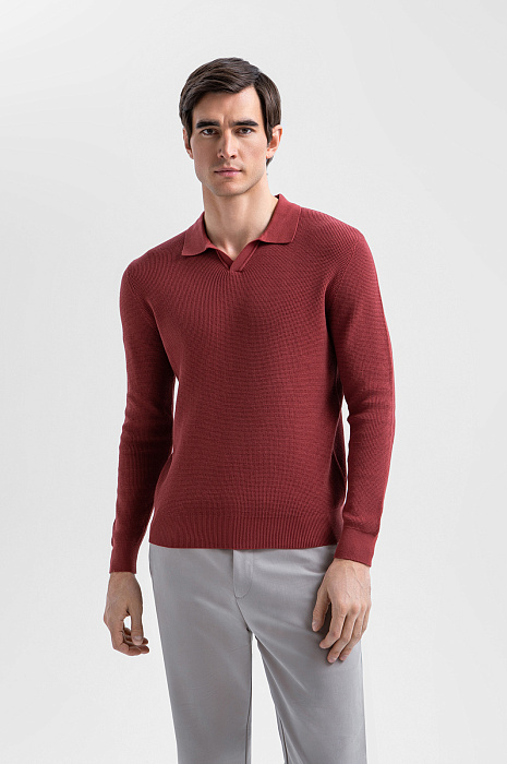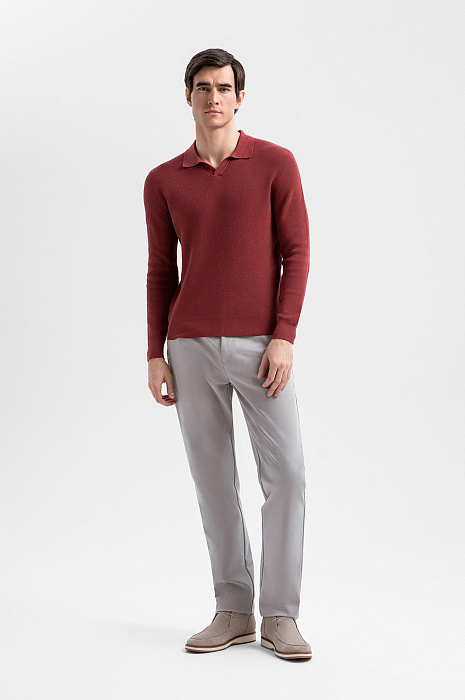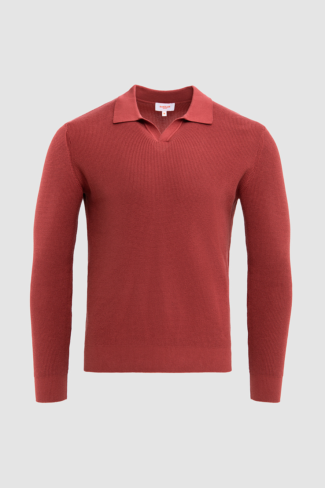 Поло KANZLER с длинным рукавом из чистого хлопка в кирпично-коричневом оттенке отражает современное понимание элегантности и комфорта. Тёплый, глубокий цвет придаёт образу выразительность и благородство, легко сочетаясь как с классическими, так и с более расслабленными элементами гардероба. Неглубокий треугольный вырез горловины придаёт модели спортивный характер. Длинный рукав делает поло уместным в межсезонье и прохладные дни. Фактурное трикотажное полотно создаёт визуальную глубину и тактильную выразительность. Гипоаллергенные воздухопроницаемые волокна хлопка берегут естественное тепло тела и поддерживают свежесть.