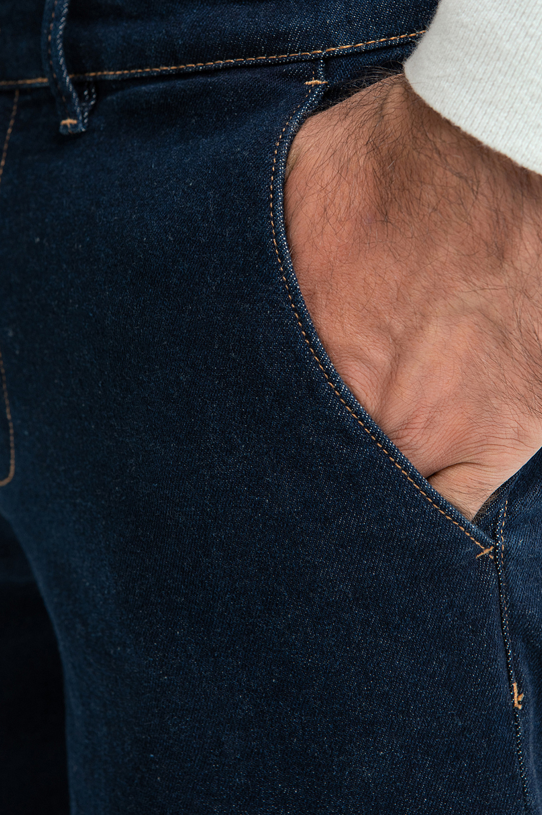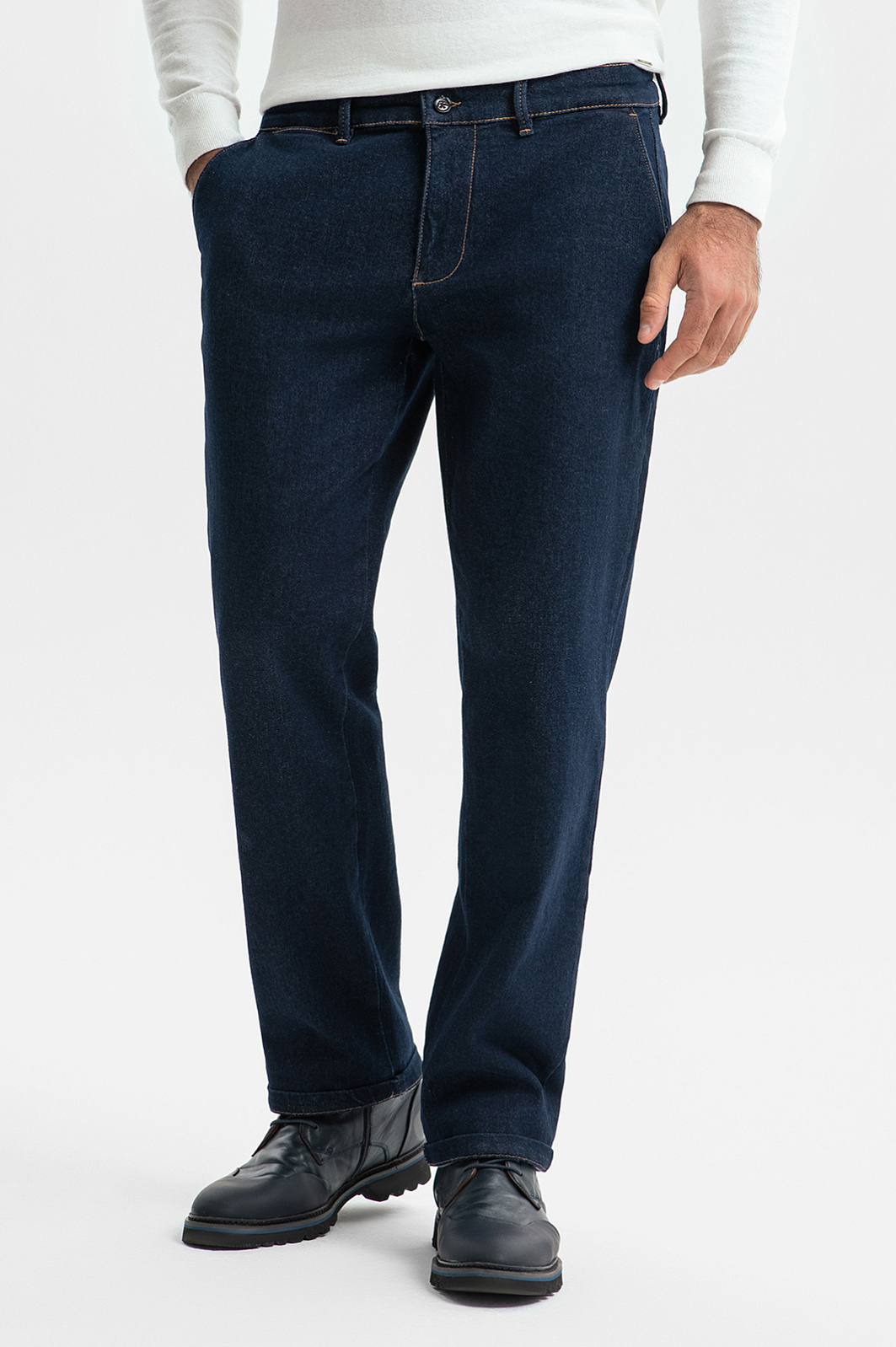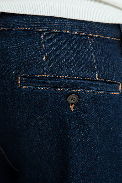 Удобные темно-синие брюки KANZLER из хлопкового денима кроя — идеальный вариант для работы, активного отдыха и путешествий. Свободный непринужденный крой не сковывает движений и задает легкое расслабленное настроение, особенно в сочетании с уютными трикотажными вещами. Отличительными чертами являются небольшие вытачки сзади, которые обеспечивают хорошую посадку, и карманы в рамку с пуговицей. Качественный деним сделан из хлопка (98%) — мягких природных гипоаллергенных гигроскопичных волокон. Благодаря небольшому включению в состав эластана (2%), материал адаптируется к фигуре, но не растягивается, сохраняя первоначальную форму. Параметры модели: рост 192, 108-83-102 Размер на модели: 34