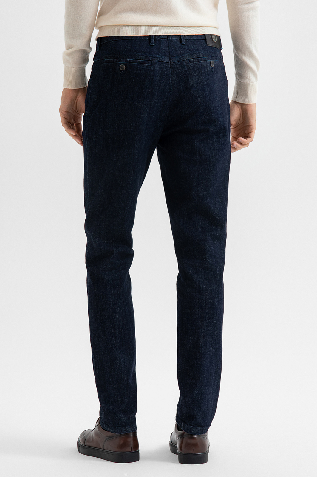 Джинсы KANZLER из лимитированной коллекции — воплощение продуманного дизайна и превосходного качества. Выразительный глубокий синий цвет подчёркивает универсальность модели, которая может стать основой как повседневных, так и для более собранных образов в стиле умный кежуал. Прямой силуэт делает джинсы актуальными вне зависимости от модных трендов. Пуговицы с фирменным логотипом на застежке спереди и на задних карманах добавляют ретро-шика. Прочная потайная металлическая застежка-крючок обеспечивает надежную фиксацию. Модель выполнена из плотного качественного денима (99% хлопок, 1% эластан), который сохраняет форму, мягко садится на любой тип фигуры и обеспечивает комфорт в движении. Параметры модели: рост 192, 101-76-97 Размер на модели: 34