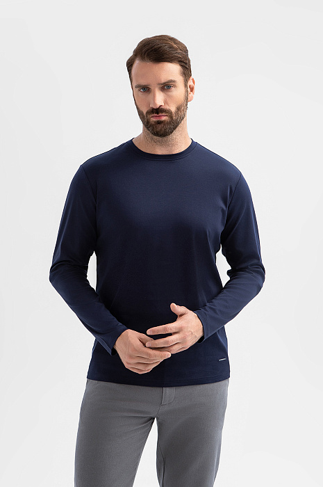 Лонгслив из мерсеризованного хлопка, цвет синий, цена 6 990 руб., код 270219 - купить в Тюмени в интернет-магазине KANZLER