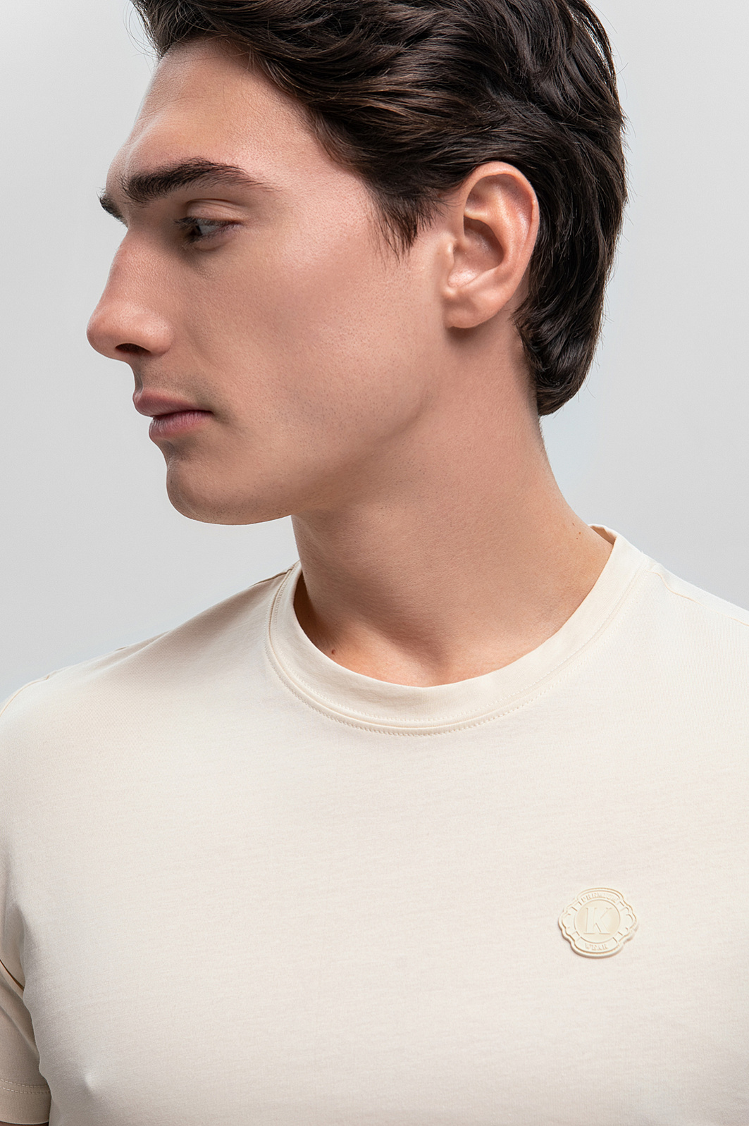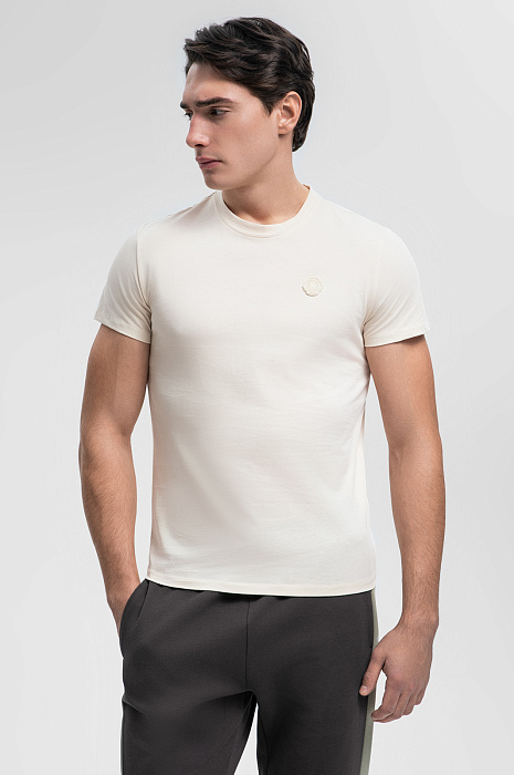 Бежевая хлопковая футболка, цвет бежевый, цена 3 990 руб., код 269135 - купить в Тюмени в интернет-магазине KANZLER