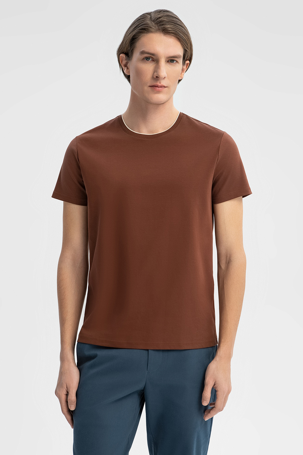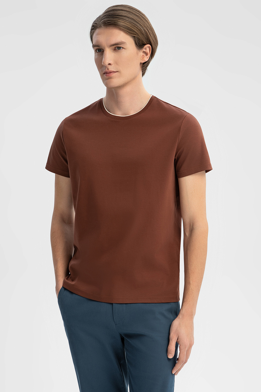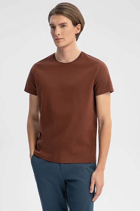 Футболка из мерсеризованного хлопка, цвет коричневый, цена 5 990 руб., код 269164 - купить в Тюмени в интернет-магазине KANZLER