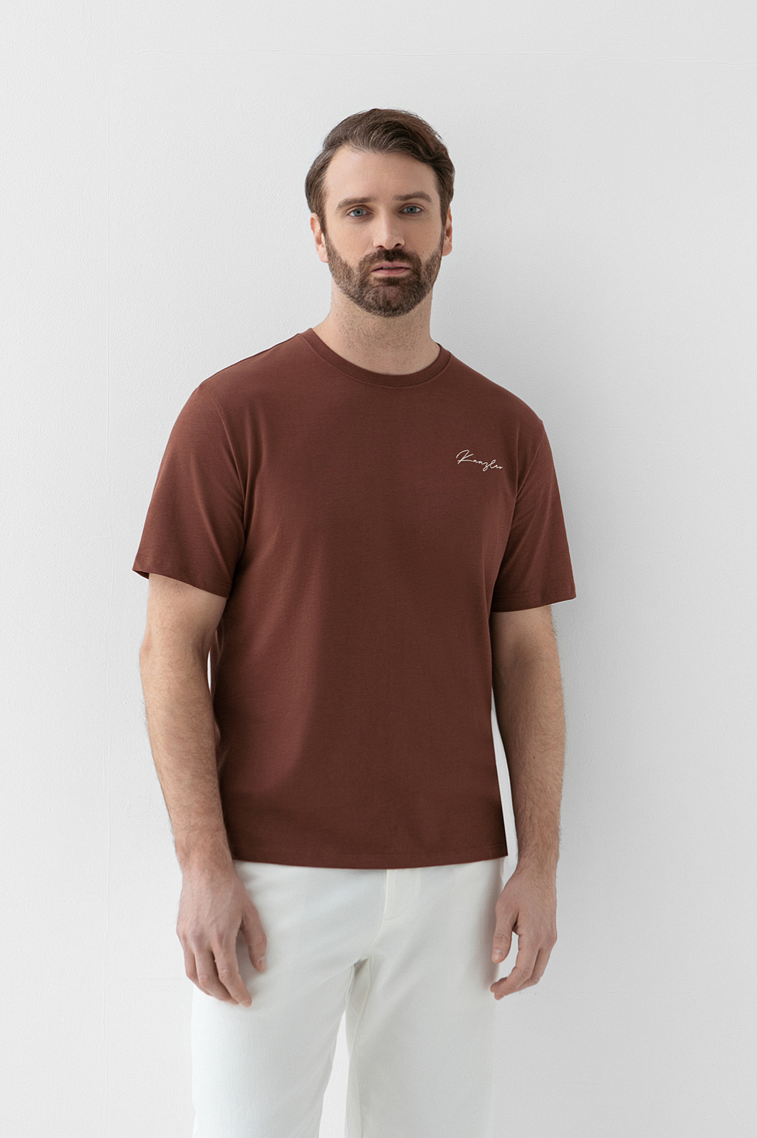 Футболка из хлопка, цвет коричневый, цена 4 990 руб., код 270982 - купить в Тюмени в интернет-магазине KANZLER