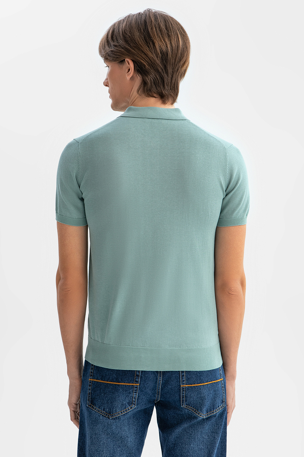 Поло из хлопка, шелка и льна, цвет зеленый, цена 8 990 руб., код 269197 - купить в Тюмени в интернет-магазине KANZLER