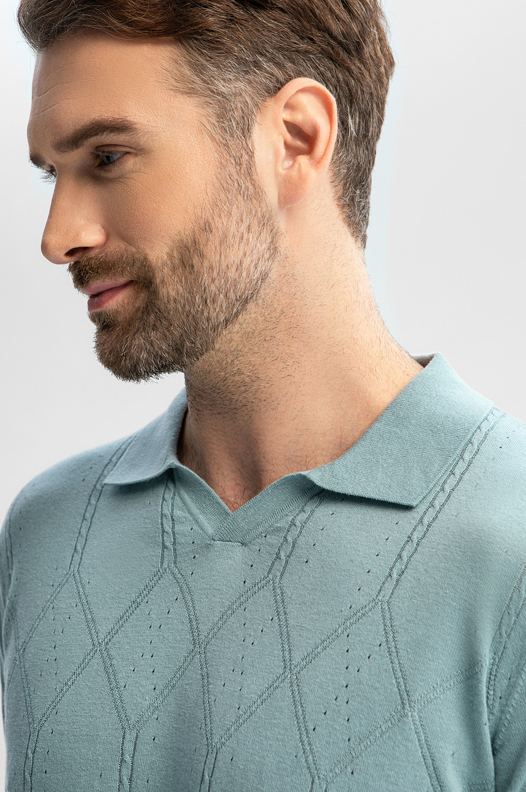 Поло KANZLER в освежающем мятном оттенке – идеальный баланс изысканности и комфорта. Для создания модели выбрали натуральный материал, объединивший лучшие свойства хлопка и льна. Мягкие гипоаллергенные волокна хлопка дарят ощущение нежности и обеспечивают воздухопроницаемость, а прочный лен сохраняет комфортный теплообмен – в поло не жарко в знойный день и тепло – в прохладный. Мятный оттенок добавляет образу легкости и глубины, а полуприлегающий крой создает изысканный образ, не сковывая движений. Ажурный узор превращает базовую модель в произведение искусства. Вертикально направленные полосы создают эффект стройности и визуально вытягивают силуэт. Дополните образ светлыми брюками и лоферами или сочетайте с бермудами и эспадрильями. Параметры модели: рост 189, 102-80-99 Размер на модели: M
