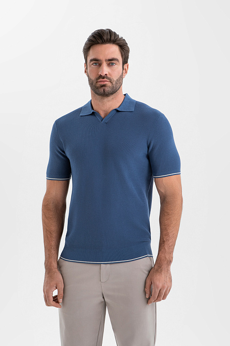 Поло из хлопка Пима, цвет голубой, цена 8 990 руб., код 271104 - купить в Тюмени в интернет-магазине KANZLER