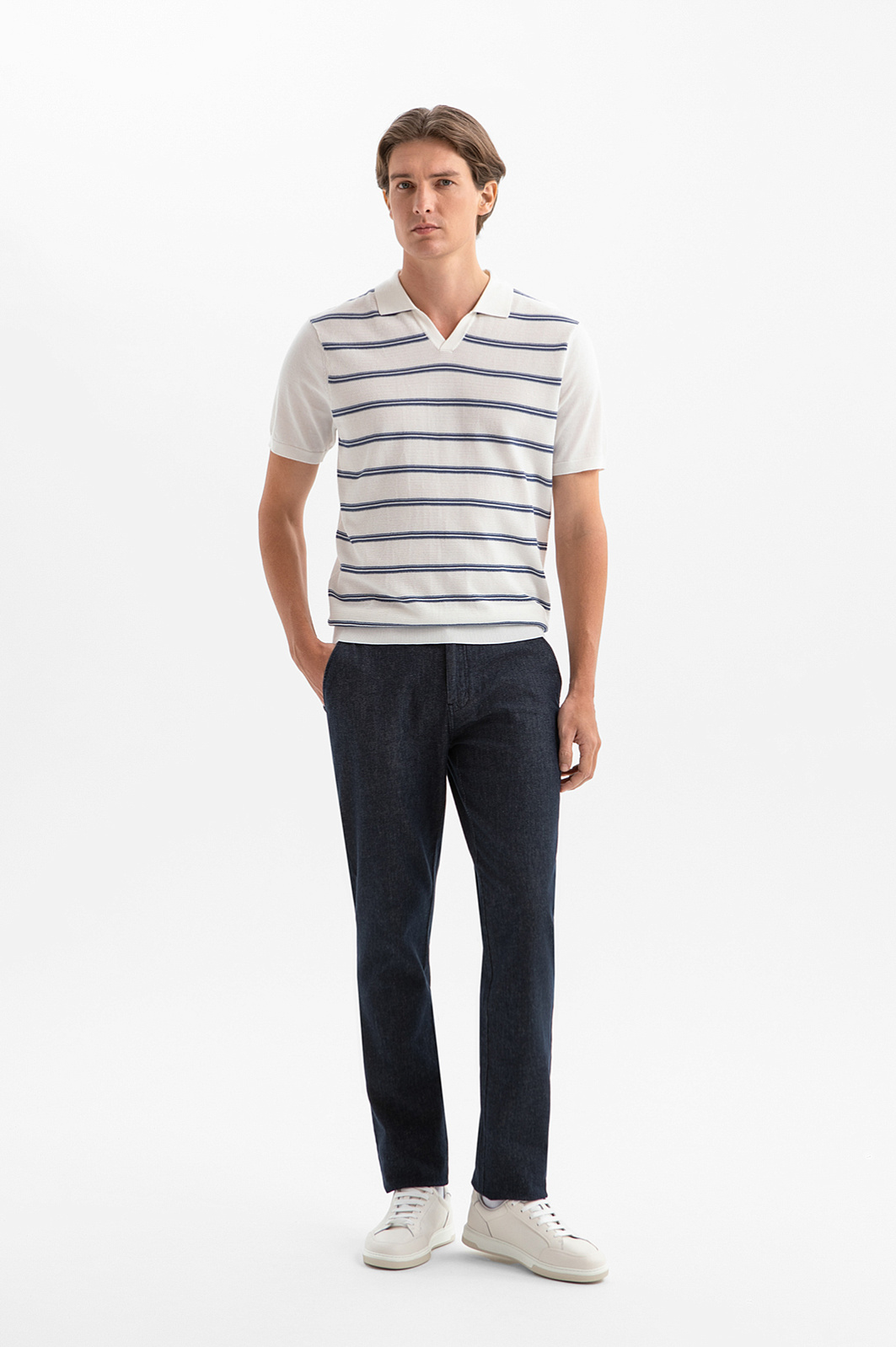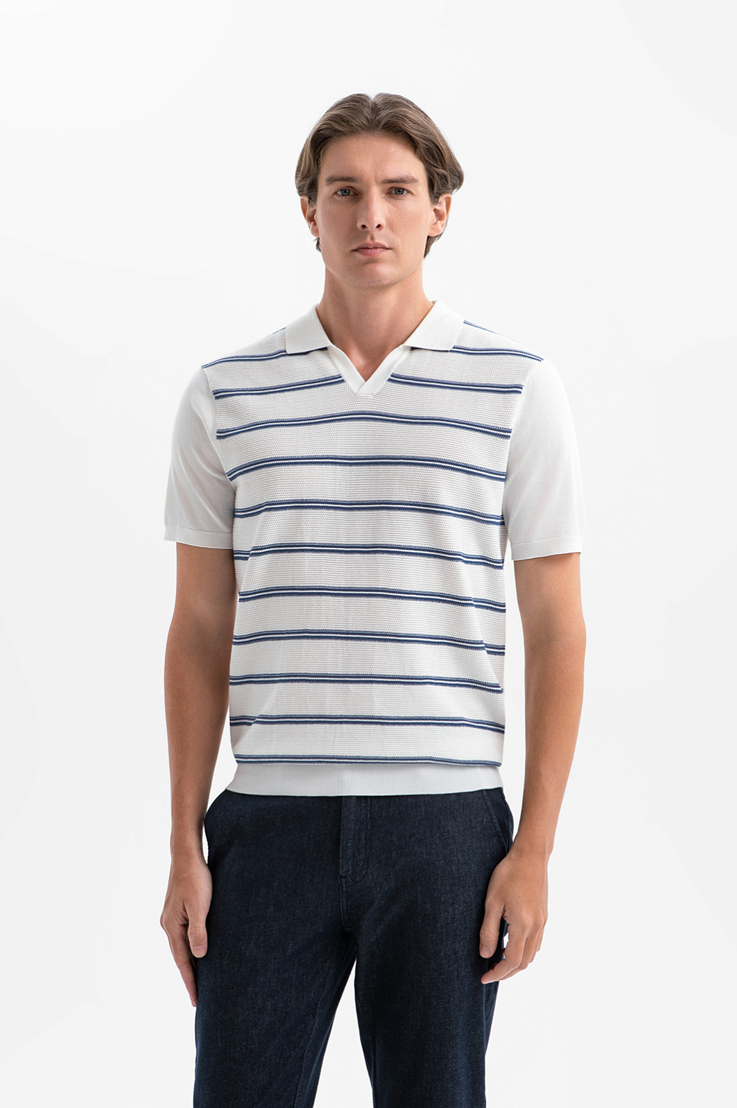 При выборе изысканной базовой одежды сложно представить себе более подходящую вещь, чем белое поло KANZLER из премиального хлопка Пима (100%). В тёплые дни, когда хочется выглядеть свежо и стильно, эта модель подойдёт как для городских выходов, так и для отдыха на природе. Передняя часть выполнена из фактурного трикотажа и украшена синей горизонтальной полоской, которая отсылает к морской эстетике и непринуждённому курортному стилю. Высококачественная ткань произведена из нежного шелковистого хлопка Пима. Тонкие гипоаллергенные волокна позволяют коже дышать и защищают тело от перегревания в жаркие дни.