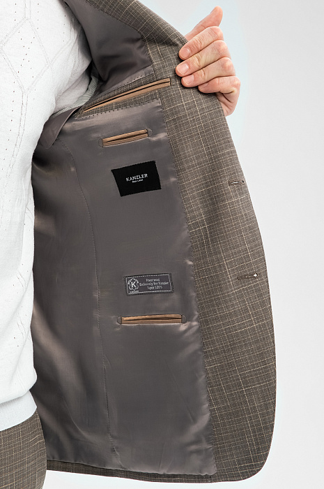 Костюм из шерсти, хлопка и льна с водоотталкивающей обработкой, цвет коричневый, цена 29 980 руб., код - купить в Тюмени в интернет-магазине KANZLER