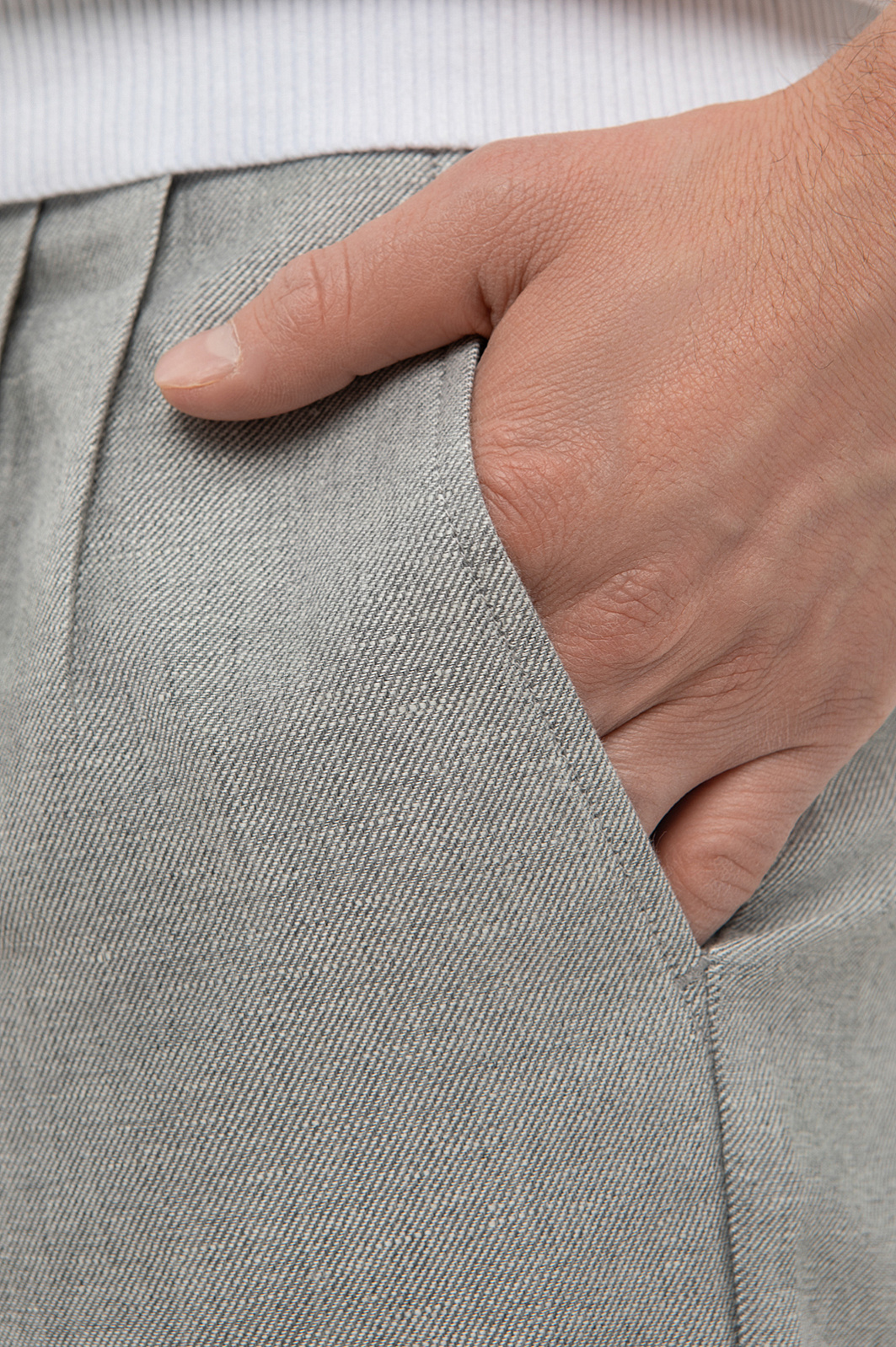 Костюм KANZLER изо льна и хлопка олицетворяет изящество и свободу. Благородный светло-серый оттенок создает непринужденный, но элегантный образ. Натуральный материал дарит ощущение свежести, обеспечивая идеальный микроклимат и в жаркий, и в прохладный день. Изысканный однобортный пиджак с боковыми шлицами не стесняет движений, даря ощущение легкости и свободы. бермуды с защипами и манжетами-отворотами привносят нотку неформальности. Костюм создан для современного мужчины, предпочитающего быть в центре внимания, оставаясь собой.