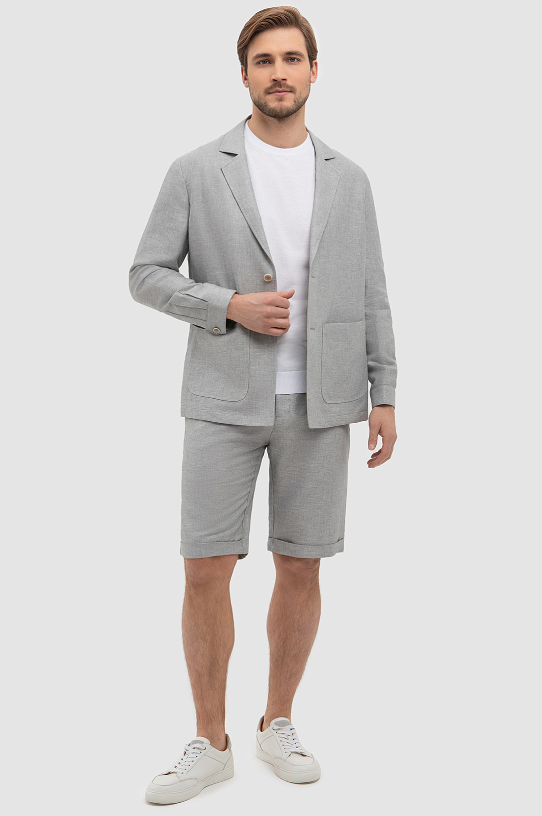Костюм изо льна и хлопка с шортами, цвет серый, цена 21 982 руб., код - купить в Тюмени в интернет-магазине KANZLER