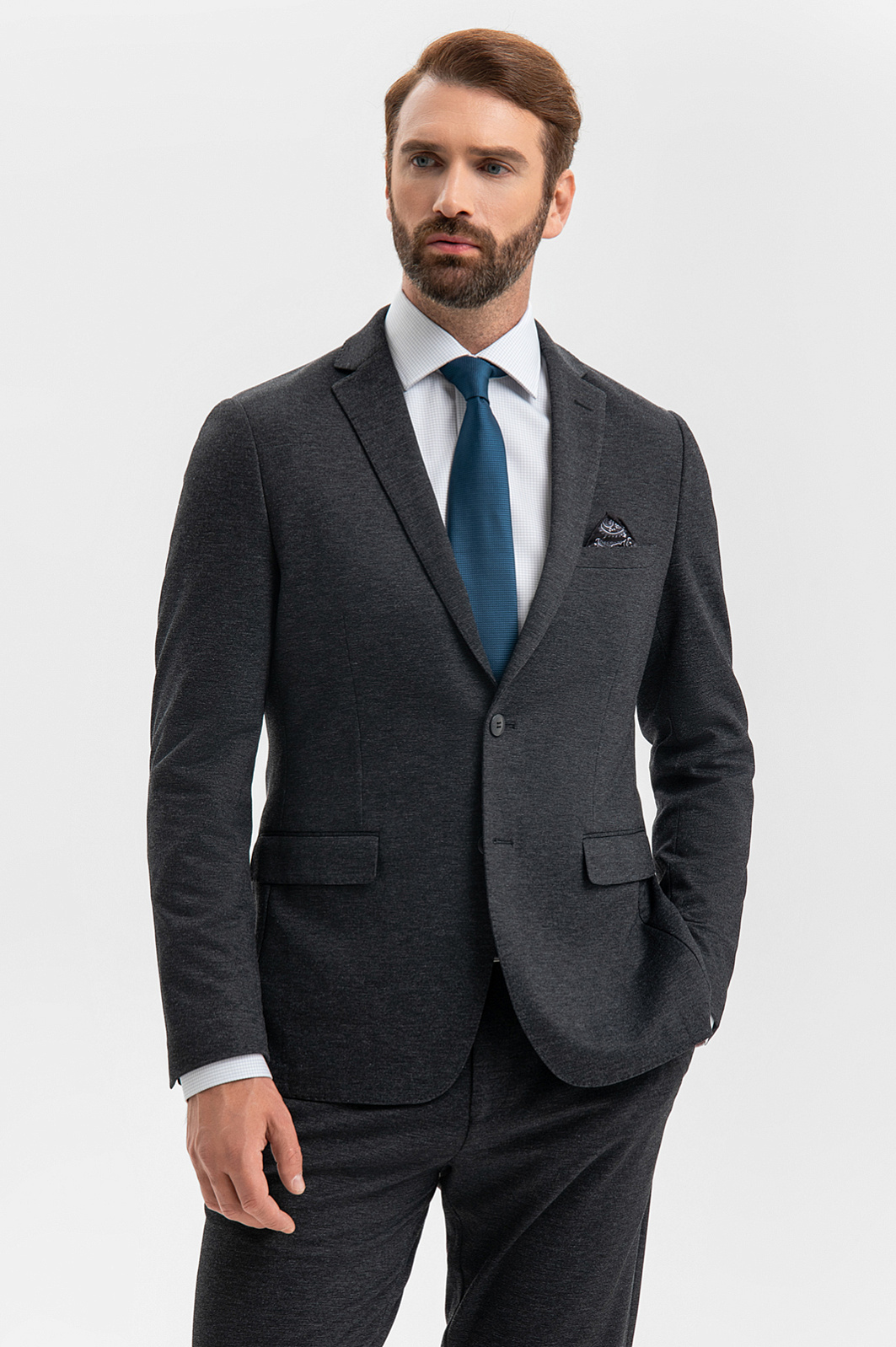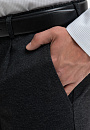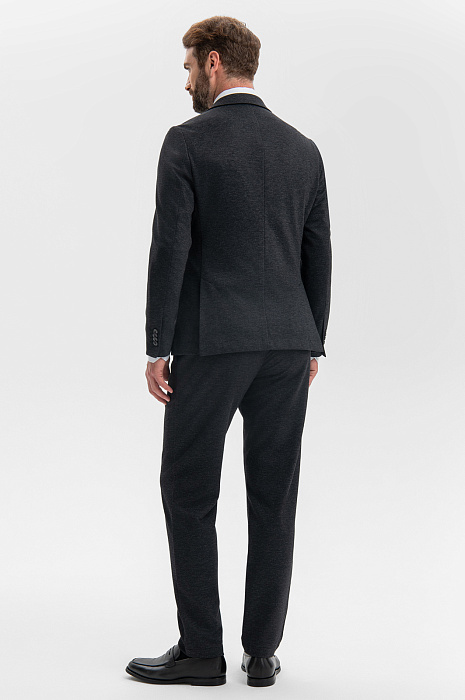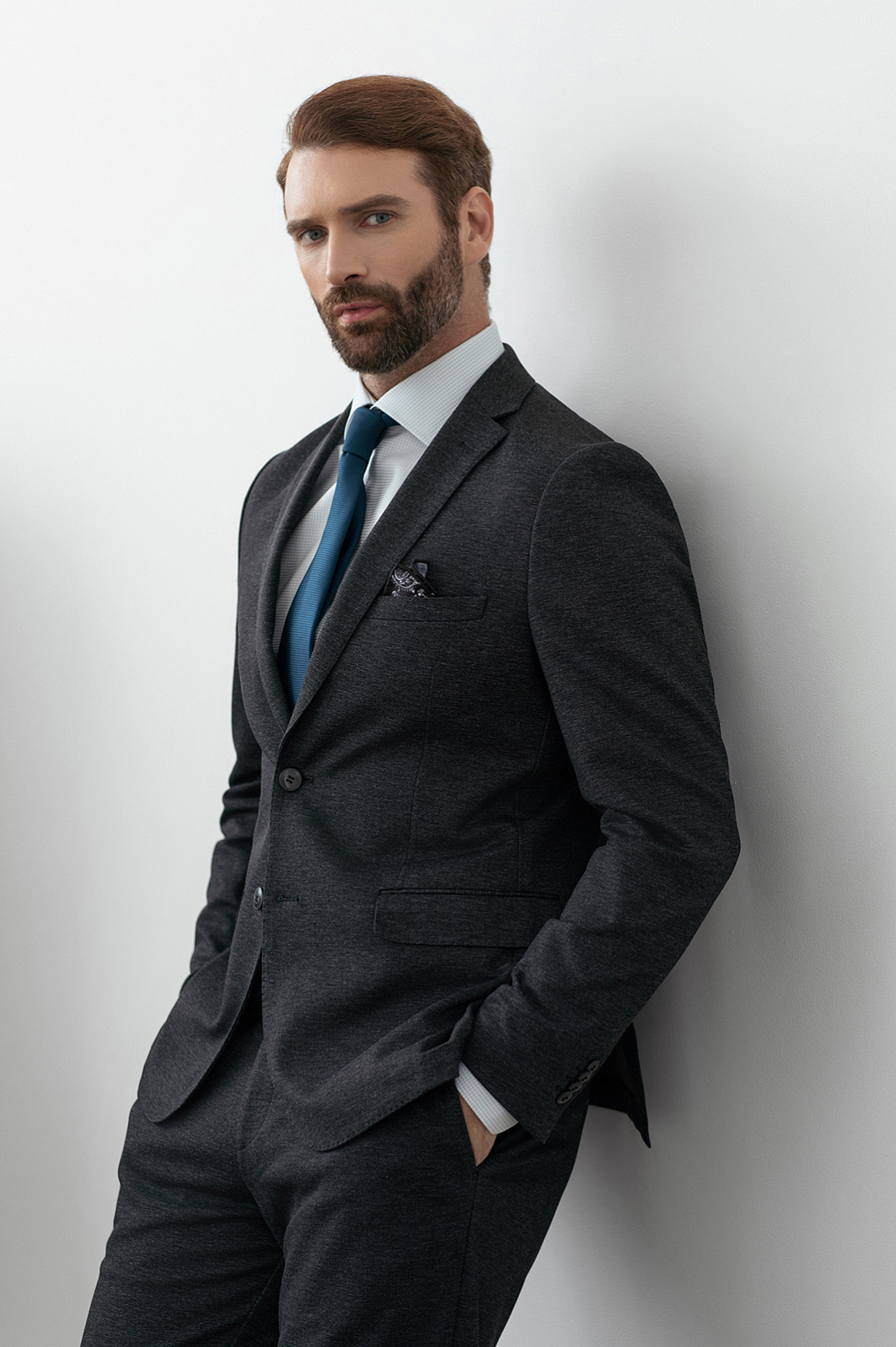 Современный темно-серый костюм KANZLER — универсальный вариант для офиса и выходов в город. Практичная удобная двойка придаёт образу собранность и уверенность. Костюм сочетает черты «старой школы» (петличка, отделочная строчка, нагрудный карман, клапаны на нижних карманах) и стремительный силуэт, который подчеркивает плечи и линию талии и визуально вытягивает фигуру. Мягкий однобортный пиджак без подкладки не сковывает движений. Кулиска на поясе брюк обеспечивает индивидуальную посадку и удобство. Прочный, практичный и функциональный материал (50% нейлон, 30% полиэстер, 18% район) устойчив к сминанию, хорошо держит форму, пропускает воздух и приятен на ощупь.