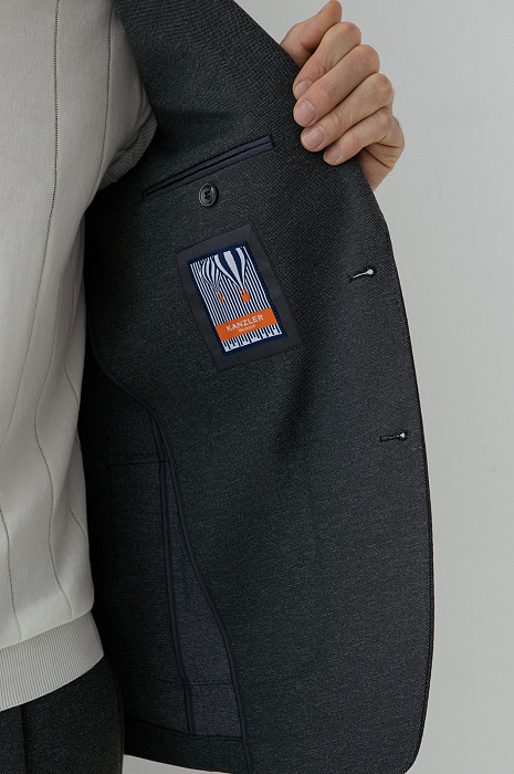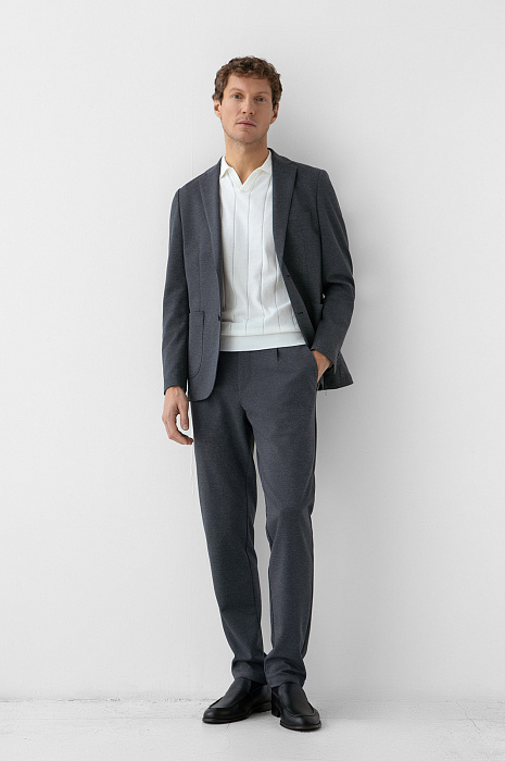 Удобный костюм KANZLER универсального серого цвета из высокотехнологичной ткани создан для городской жизни: он выдерживает насыщенный ритм и легко адаптируется к смене планов, что очень удобно, если после работы намечается неформальная встреча или свидание. Слегка зауженный силуэт собирает образ в единое целое, подчёркивая достоинства фигуры. В комплекте — облегчённый пиджак с накладными карманами и комфортные брюки на кулиске с резинкой на поясе. Практичная инновационная ткань из прочного полиэстера с добавлением вискозы, нейлона и спандекса отличается мягкостью, пластичностью и устойчивостью к сминанию и износу.