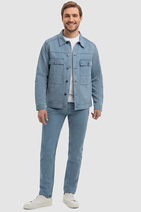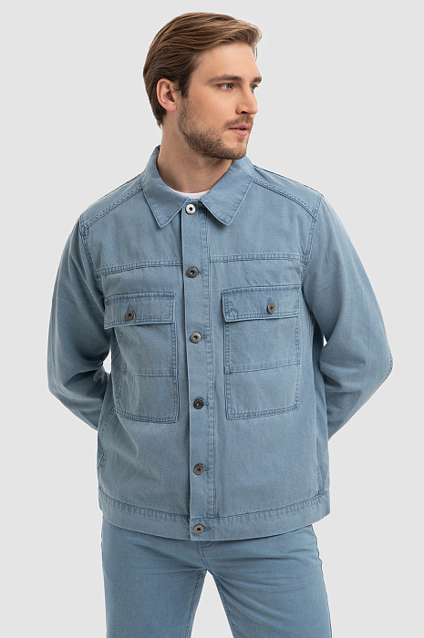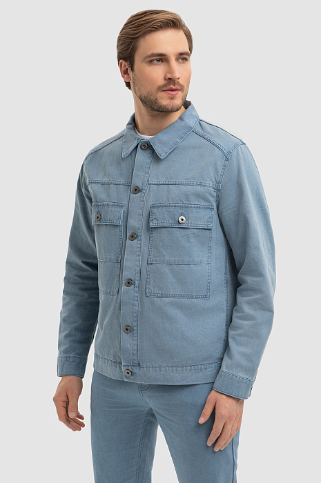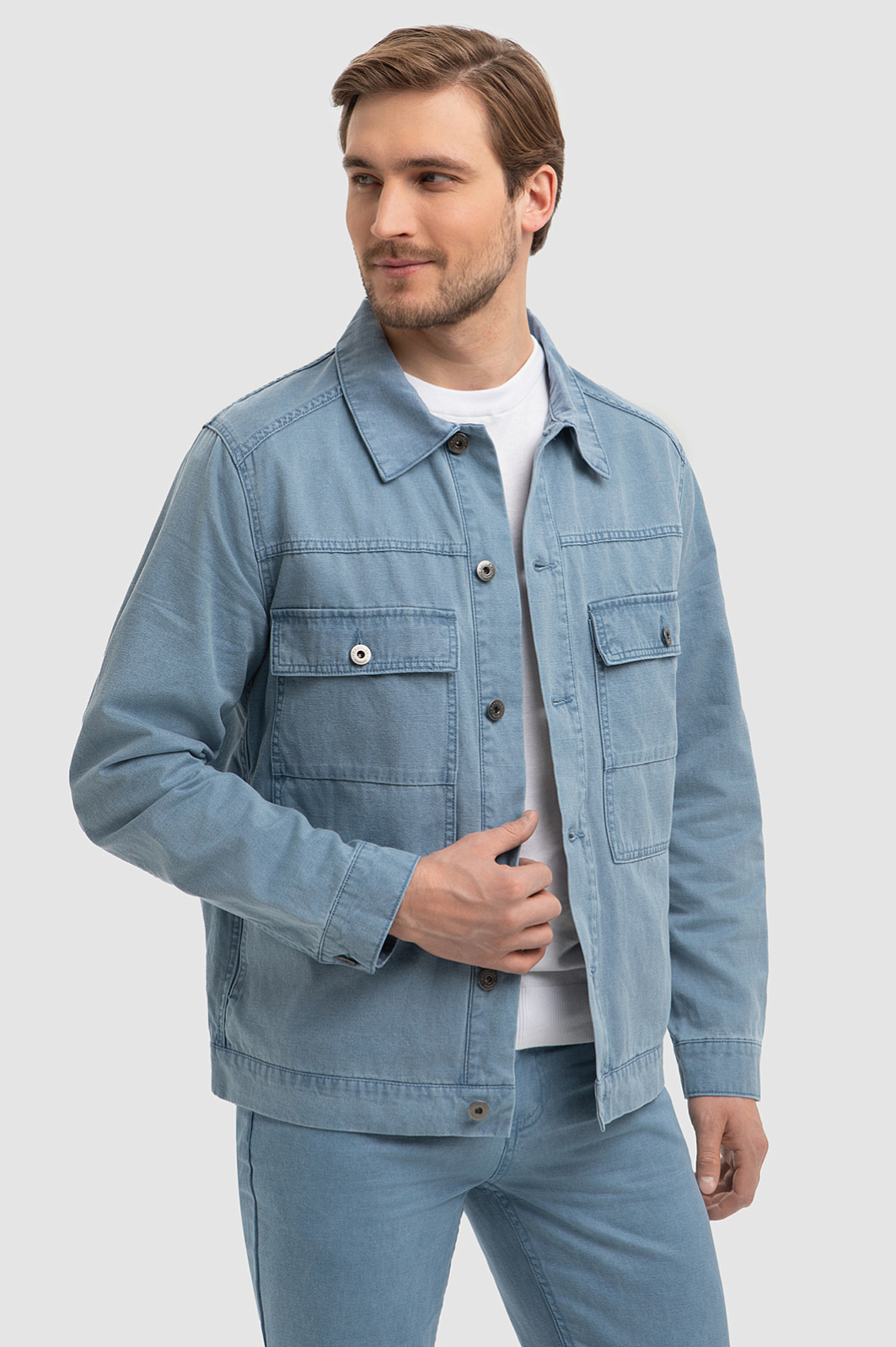 Куртка джинсовая с добавлением льна, цвет голубой, цена 7 990 руб., код 266725 - купить в Тюмени в интернет-магазине KANZLER