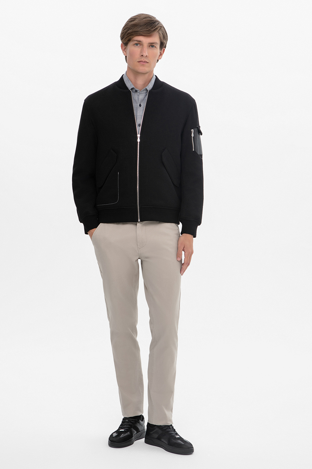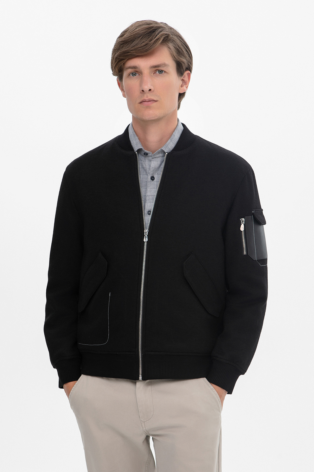 Бомбер из смесовой шерсти, лимитированная коллекция, цвет черный, цена 19 990 руб., код 268224 - купить в Тюмени в интернет-магазине KANZLER