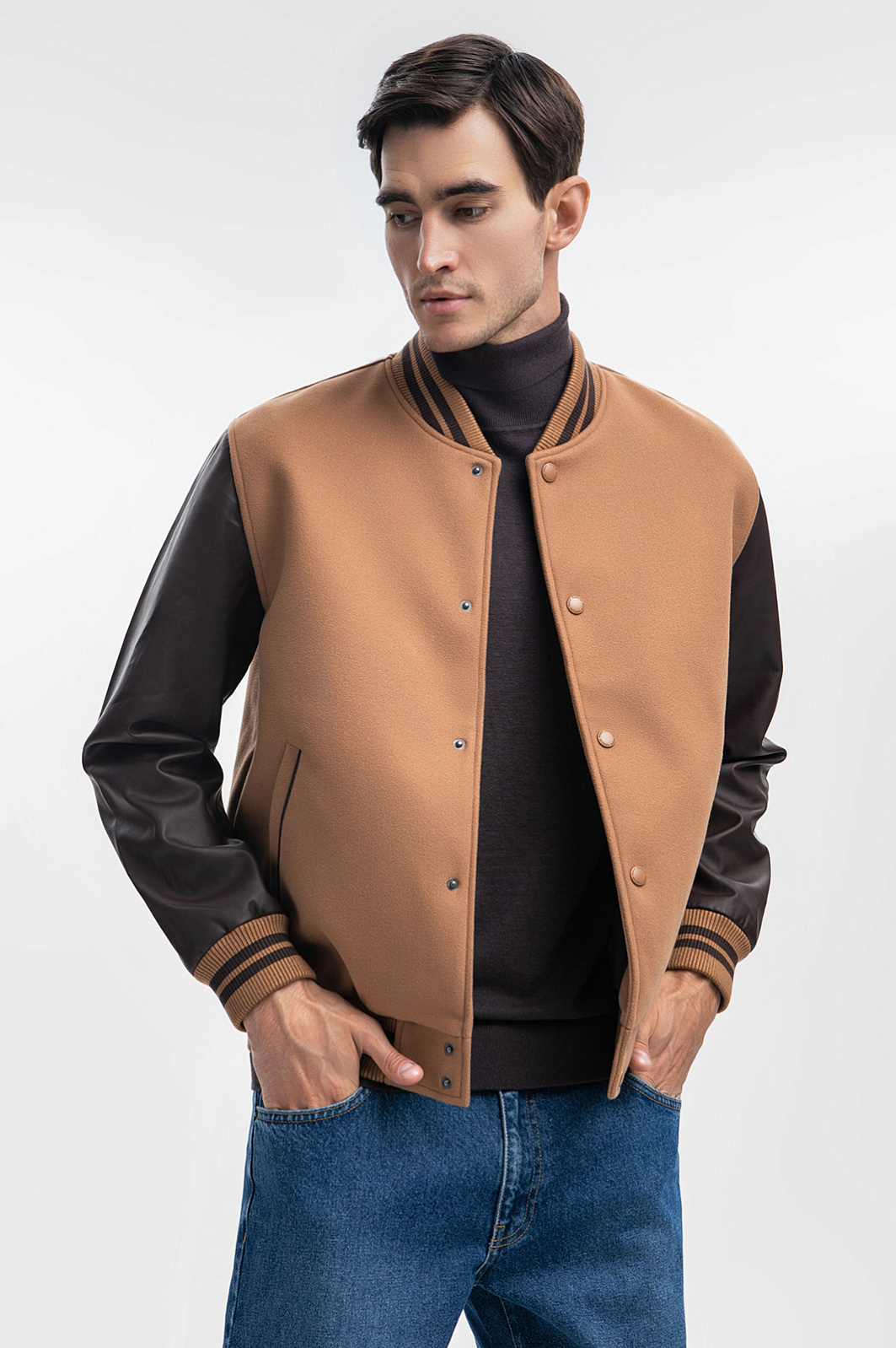 Новый сезон от KANZLER — свежий взгляд на силуэт, цвет и сочетание материалов. Представляем бомбер в самых актуальных оттенках этой осени: ореховом и горького шоколада. Трендовый цвет, трикотажные манжеты, застежка на кнопках, невысокий воротник-стойка и контрастные рукава — бомбер, который идеально дополнит повседневный мужской гардероб. Собирать комплекты с ним очень просто - благодаря своему дизайну модель сама по себе смотрится как завершенное произведение, добавляя нужные акценты образу. Наши стилисты советуют носить его с классическим темно-синим денимом и водолазкой, джоггерами и толстовкой. Параметры модели: рост 192, 101-76-97 Размер на модели: 50
