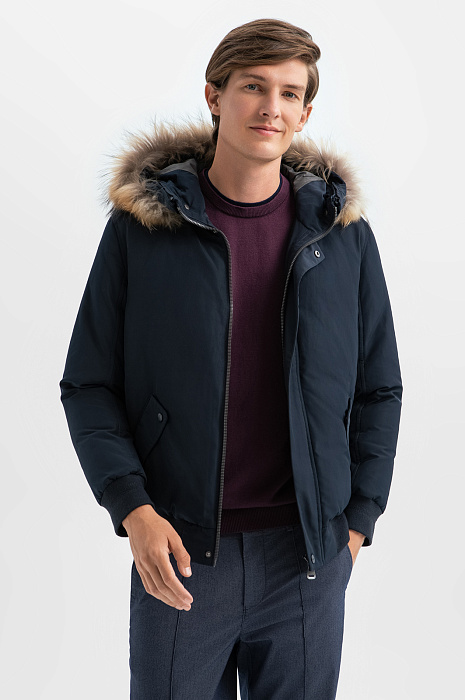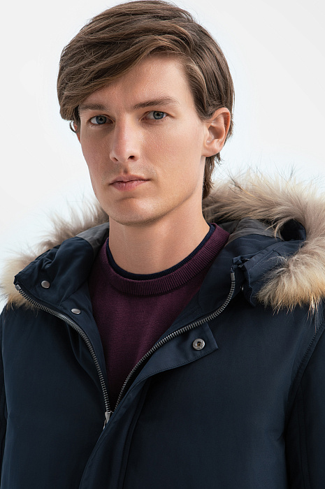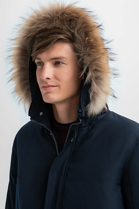 Куртка с натуральным мехом и водоотталкивающей обработкой, цвет синий, цена 16 990 руб., код 268231 - купить в Тюмени в интернет-магазине KANZLER