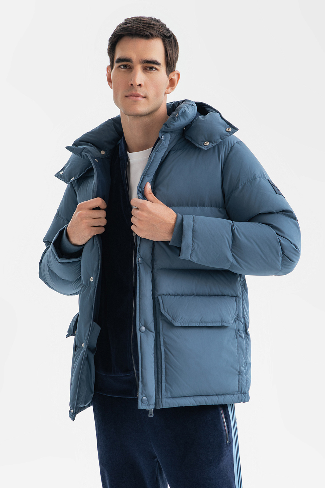 Серо-голубой пуховик KANZLER удобной длины со съемным капюшоном из коллекции уик-энд подойдет для любой ситуации: городских дел и отдыха на природе. Интересоваться прогнозом погоды при этом не обязательно — теплая непродуваемая куртка защитит от холода, ветра, дождя и снега. Она сшита из практичной технологичной ткани из полиэстера с водоотталкивающей обработкой. Внутри — теплый натуральный наполнитель из пуха (90%) с пером. Горизонтальная строчка и большие прямоугольные карманы с клапанами придают модели актуальный современный урбанистический вид. Параметры модели: рост 192, 101-76-97 Размер на модели: 50