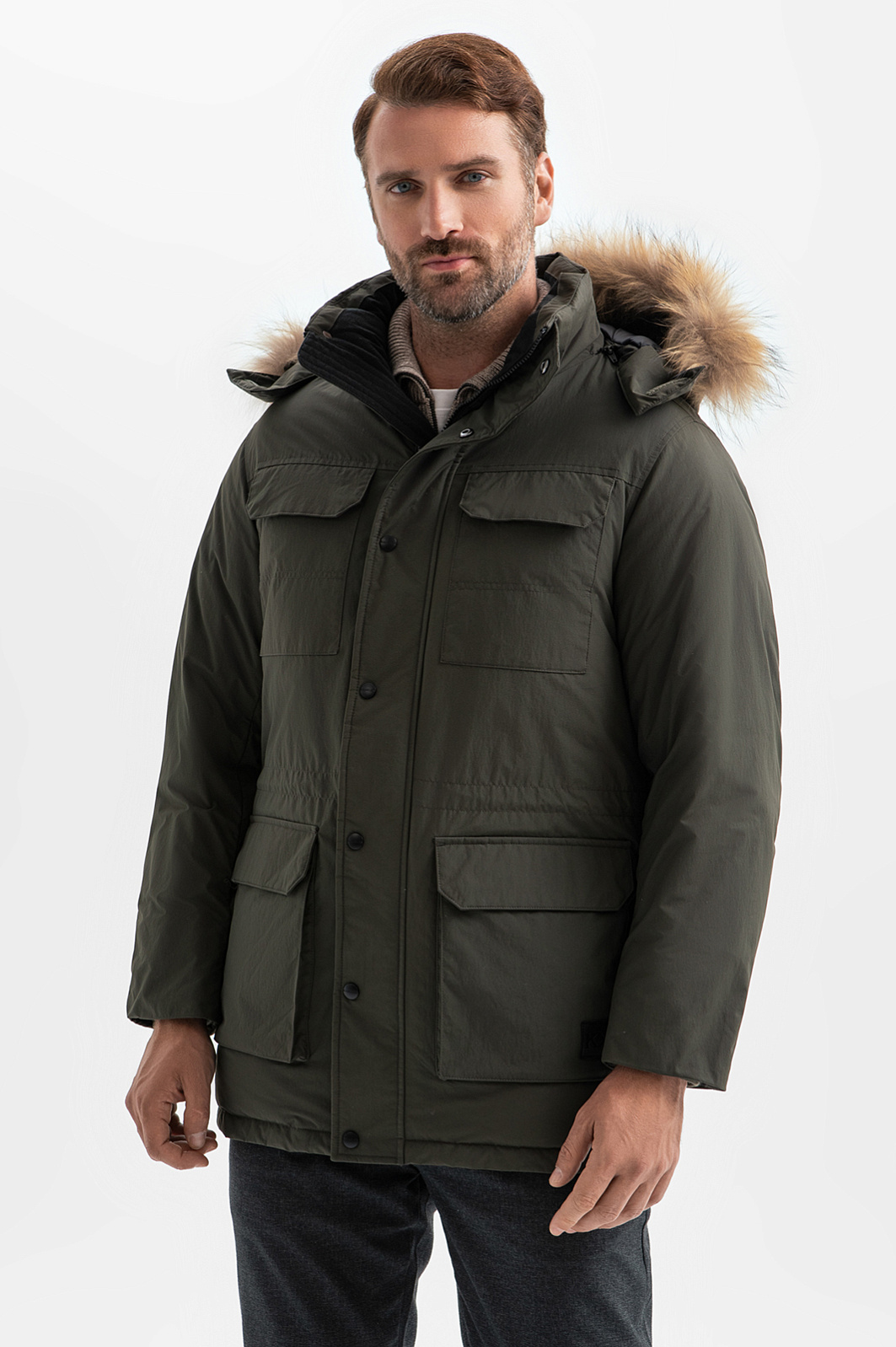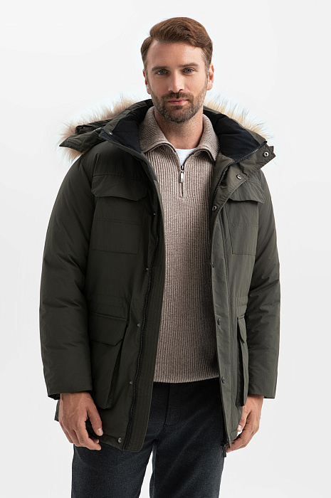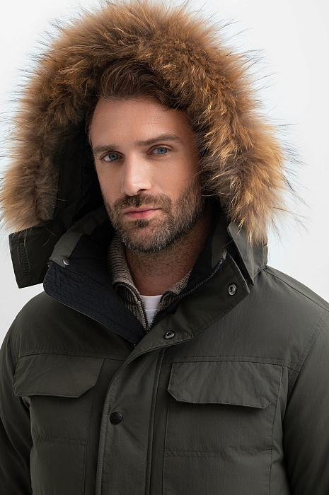 Куртка с натуральным мехом и водоотталкивающей обработкой, цвет хаки, цена 16 990 руб., код 268234 - купить в Тюмени в интернет-магазине KANZLER