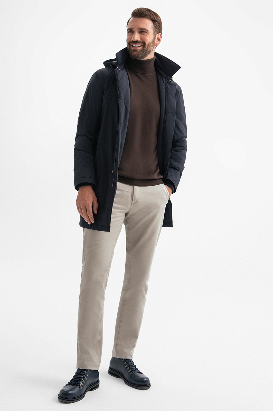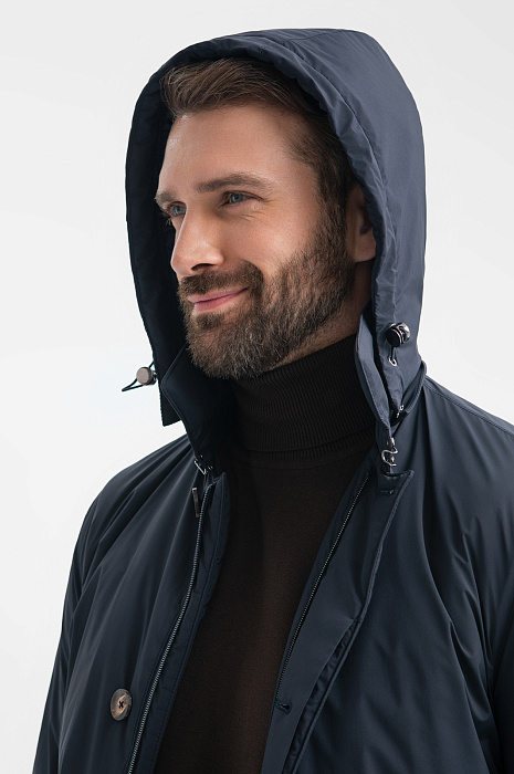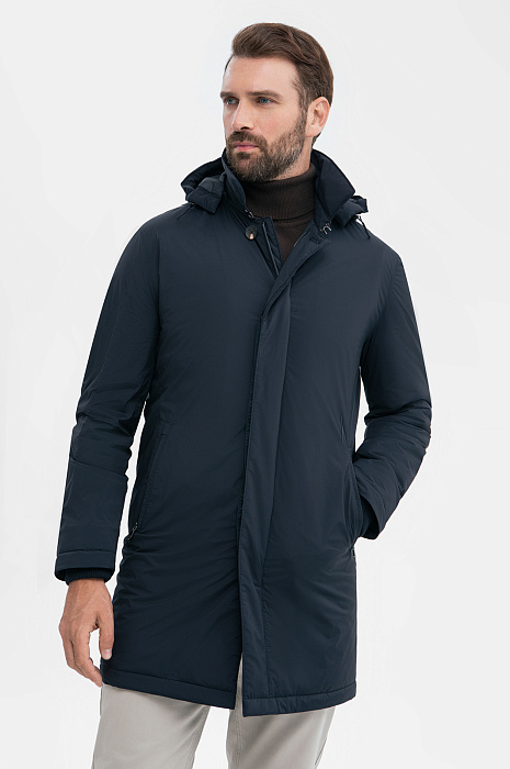 Удлиненная демисезонная куртка KANZLER в глубоком и благородном синем оттенке – идеальное сочетание элегантности и функциональности. Водоотталкивающая обработка избавит от забот о внезапных осадках, а капюшон надёжно защитит от ветра. Материал куртки, состоящий из 87% полиамида и 13% эластана, придаёт изделию прочность, лёгкость и эластичность, а подкладка и наполнитель из полиэстера дарят комфорт и тепло. Идеальная посадка и стильный силуэт делают куртку незаменимой для любого случая, будь то прогулка по городу или деловая поездка. Эта модель станет ключевым элементом гардероба для межсезонья. Параметры модели: рост 189, 102-80-99 Размер на модели: 50