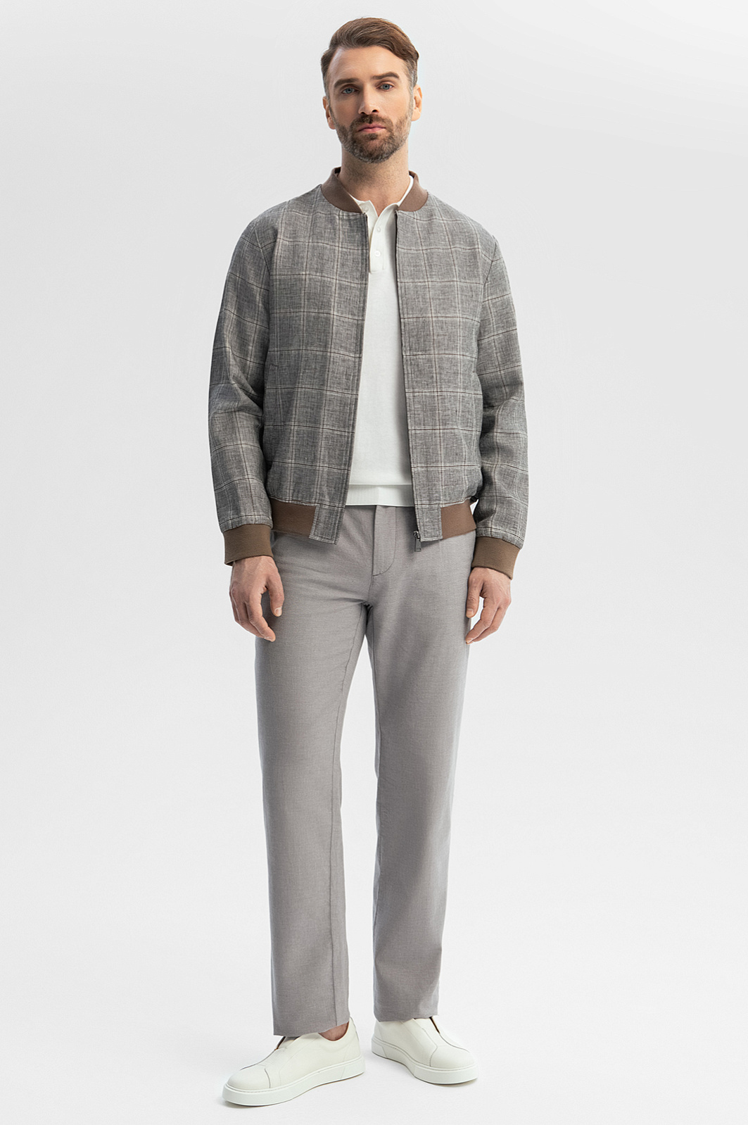 Создание серого в широкую клетку бомбера KANZLER изо льна и хлопка — это история о том, как с помощью дорогой ткани можно преобразить классическую модель, сделав ее элегантной и изысканной. Завершающим штрихом служат акцентные детали — коричневые трикотажные резинки на воротнике, манжетах и подоле. Куртка гармонично сочетается с джинсами и неформальными брюками без стрелок. Лаконичный классический крой подчеркивает благородство натурального материала. Ткань создана из льна, который обеспечивает тактильно приятные ощущения, и невесомого воздухопроницаемого хлопка. Подкладка сшита из гладкого прочного смесового материала. Карманы — боковые с застежкой-молнией и вместительный внутренний — надежно сохранят важные мелочи. Параметры модели: рост 189, 102-80-99 Размер на модели: 50