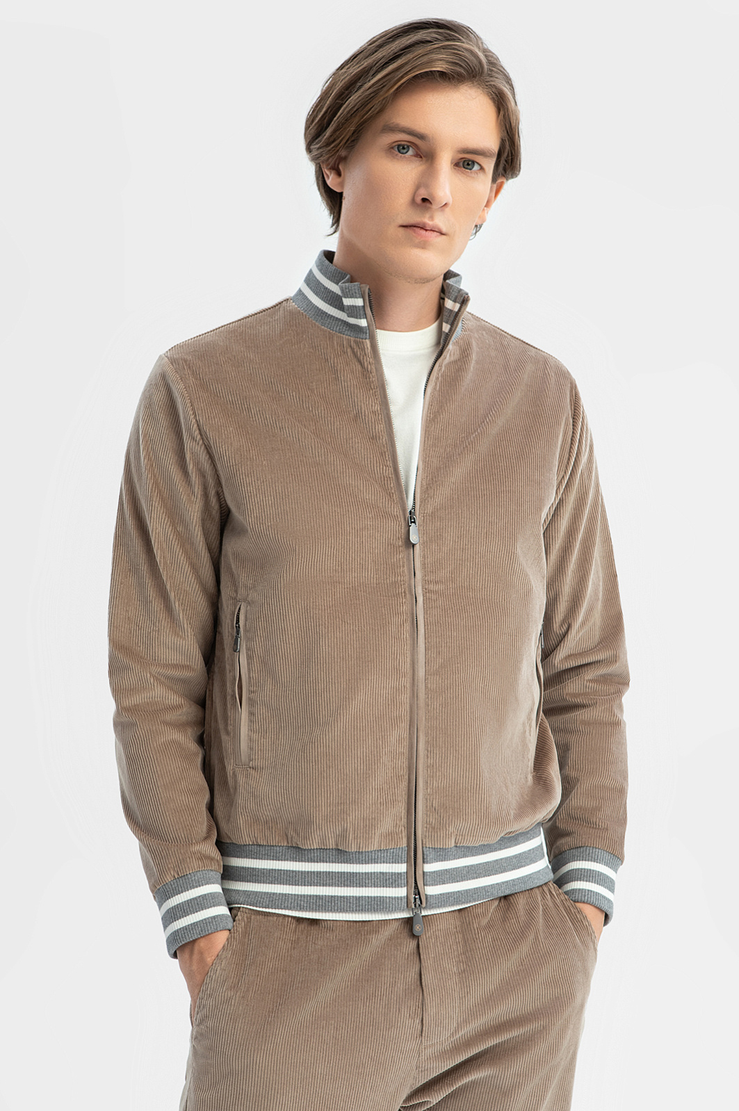 Бомбер из вельвета Duca Visconti Di Modrone, лимитированная коллекция, цвет бежевый, цена 24 990 руб., код 269373 - купить в Тюмени в интернет-магазине KANZLER