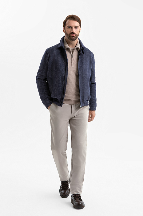 Универсальная куртка KANZLER из смесовой шерсти — воплощение городского шика, респектабельности и практичности. Сдержанный синий оттенок универсален, легко сочетается с разными цветами одежды и подходит для множества ситуаций — от повседневных городских прогулок и встреч до поездок и путешествий. Лаконичный крой подчёркивает современный характер: аккуратный отложной воротник придаёт облику собранность, манжеты на пуговицах завершают рукава чёткой линией, а резинка по низу обеспечивает идеальную посадку и защищает от ветра. Безупречный пошив, высокое качество материалов и деталей гарантирует долгий срок службы. Ткань с плотным саржевым плетением сделана на основе натуральной шерсти (70%). Внутренний слой из полиэстера служит для утепления, не создавая лишнего объема. Параметры модели: рост 189, 102-80-99 Размер на модели: 50
