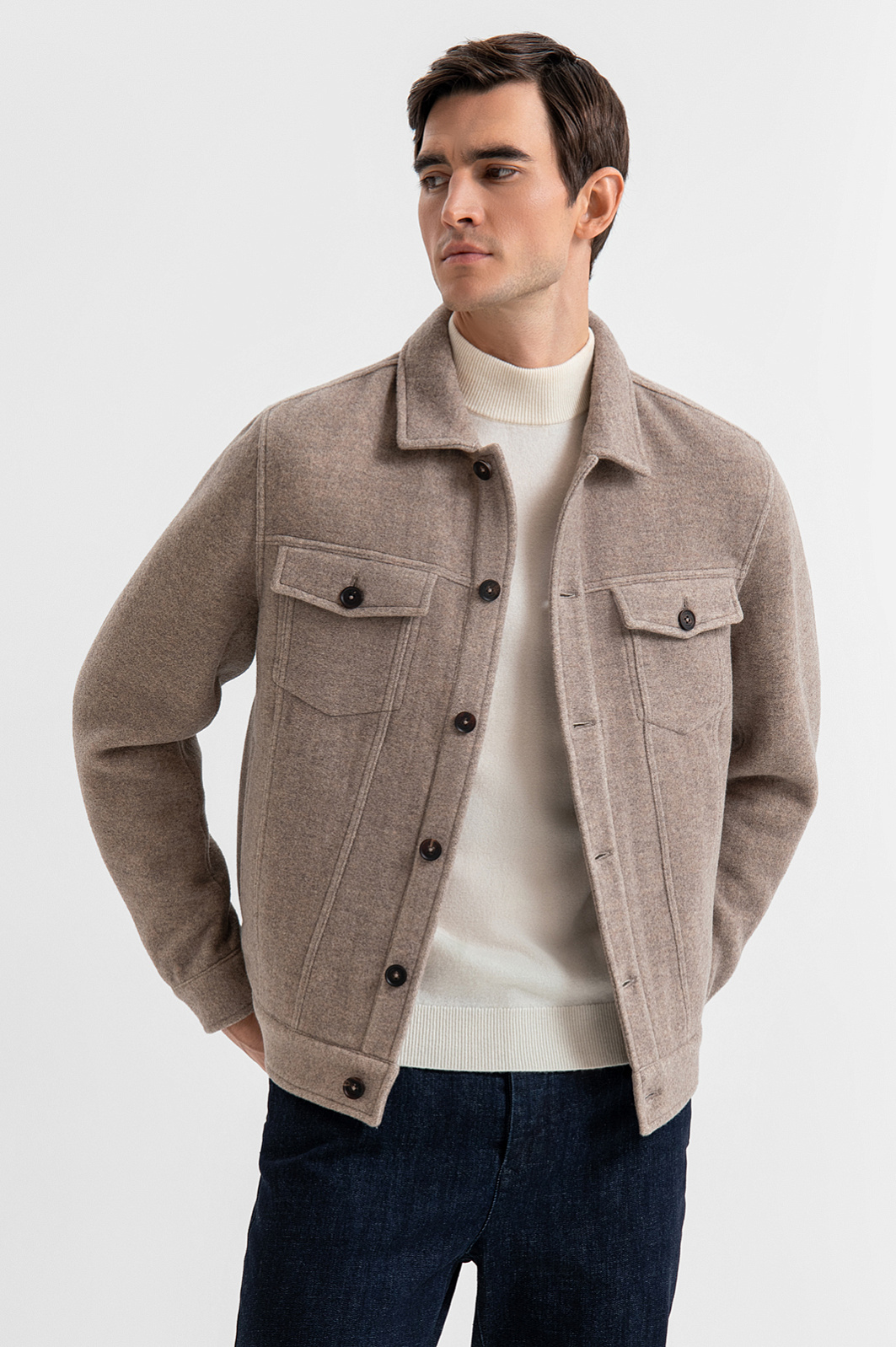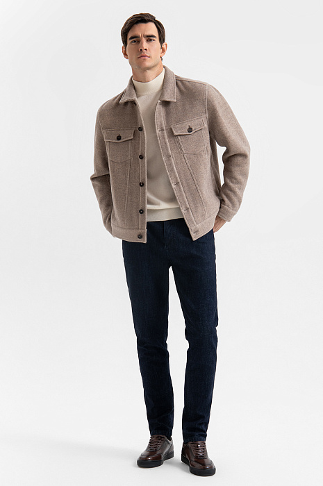 Роскошная альтернатива классической джинсовке — бежевая куртка KANZLER из шерсти с кашемиром из лимитированной коллекции поднимет повседневный гардероб на новый уровень. Стильная модель органично впишется как в городской минимализм, так и в кежуал. Это выбор мужчины, уверенного в деталях. Нагрудные карманы с клапанами и традиционный крой, отсылающие к культовой джинсовой куртке, обретают новое звучание за счёт благородной фактуре дорогой ткани. Силуэт, заданный четкими линиями, подчёркивает строгую архитектуру модели. Натуральная ткань из шерсти с добавлением кашемира сочетает в себе прочность и структурность натуральной шерсти с мягкостью и нежностью кашемира. Материал отлично сохраняет естественное тепло, оставаясь при этом дышащим и комфортным в носке. Параметры модели: рост 192, 101-76-97 Размер на модели: 50