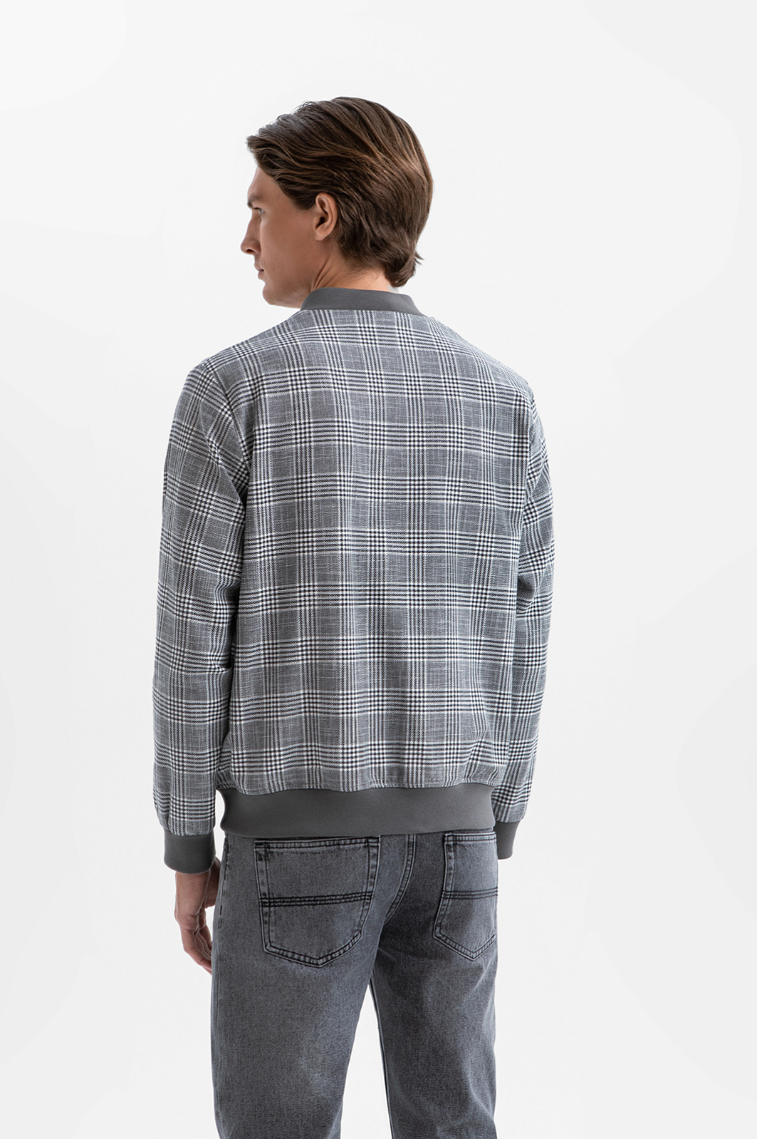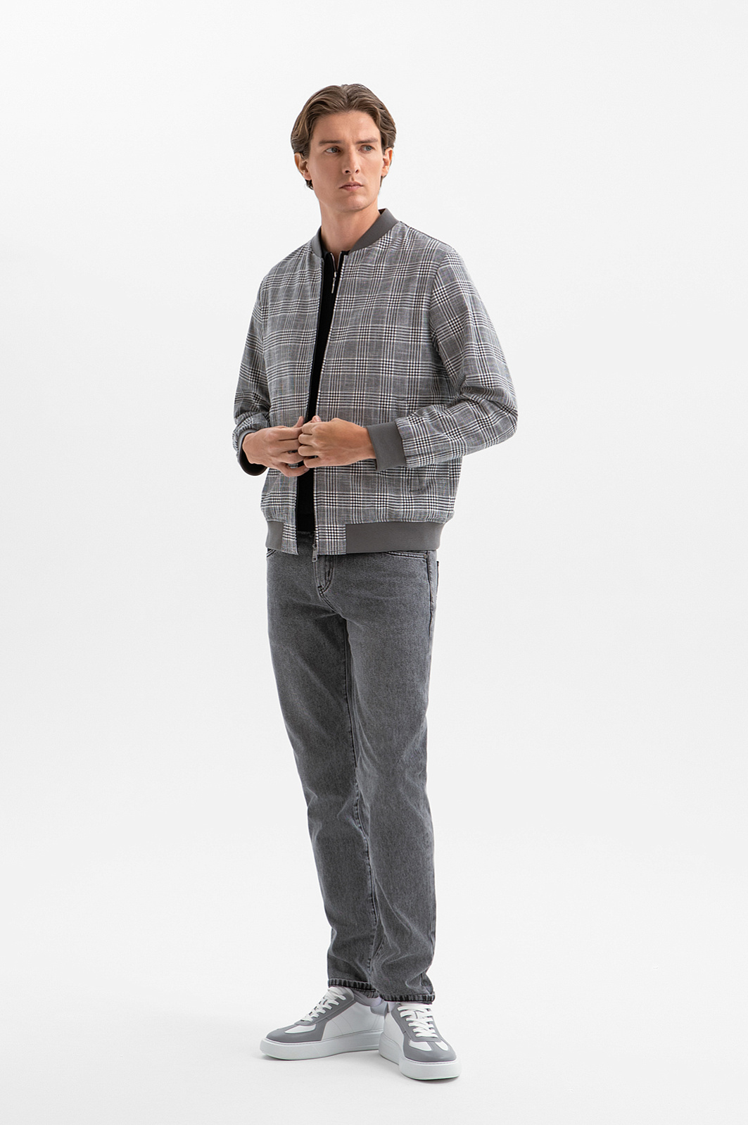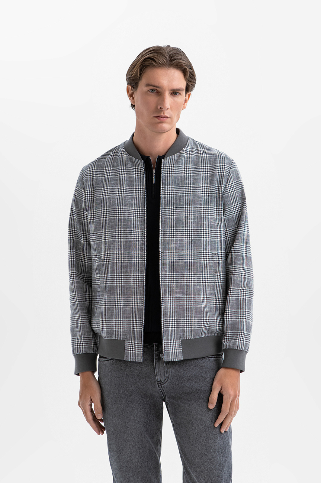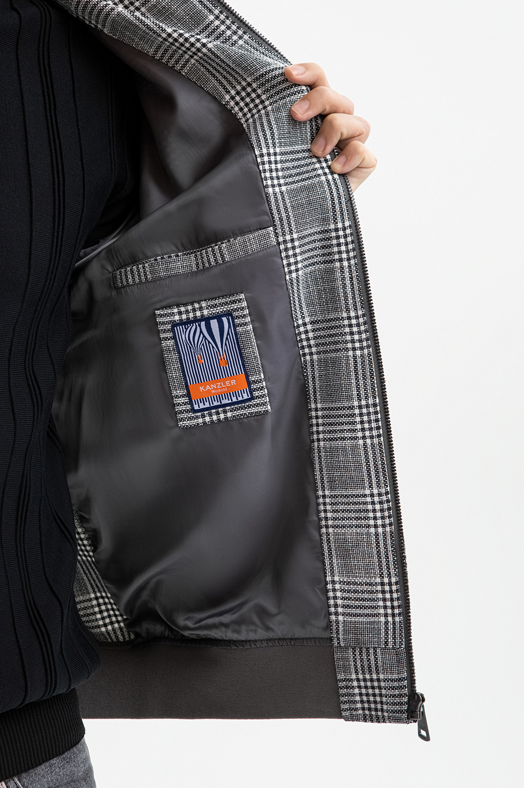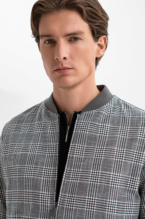Бомбер в клетку из хлопка и льна, цвет серый, цена 24 990 руб., код 271044 - купить в Тюмени в интернет-магазине KANZLER